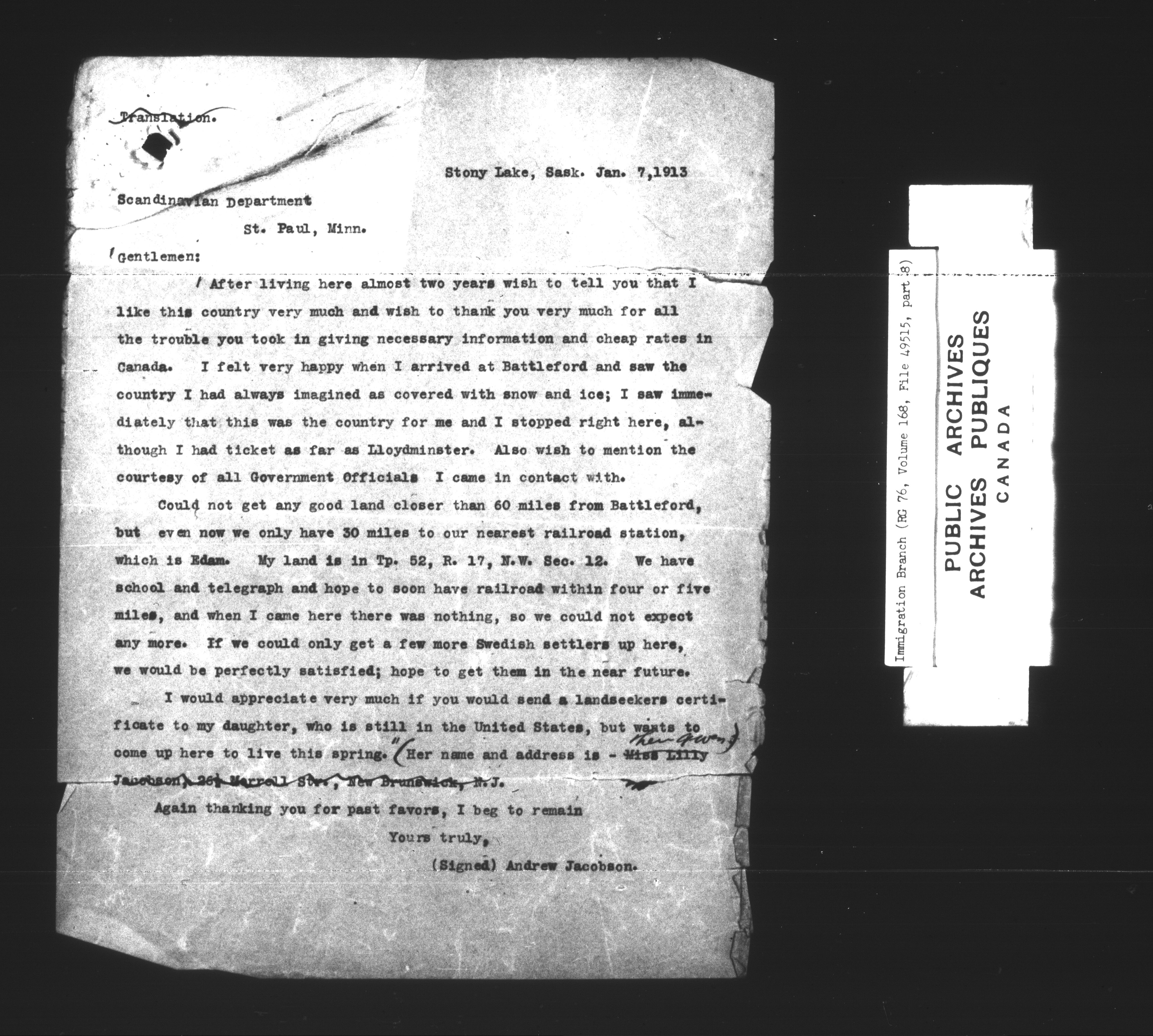 Subject, policy and case files in the First Central Registry series of the Immigration Program, 1892-1950 - 7325