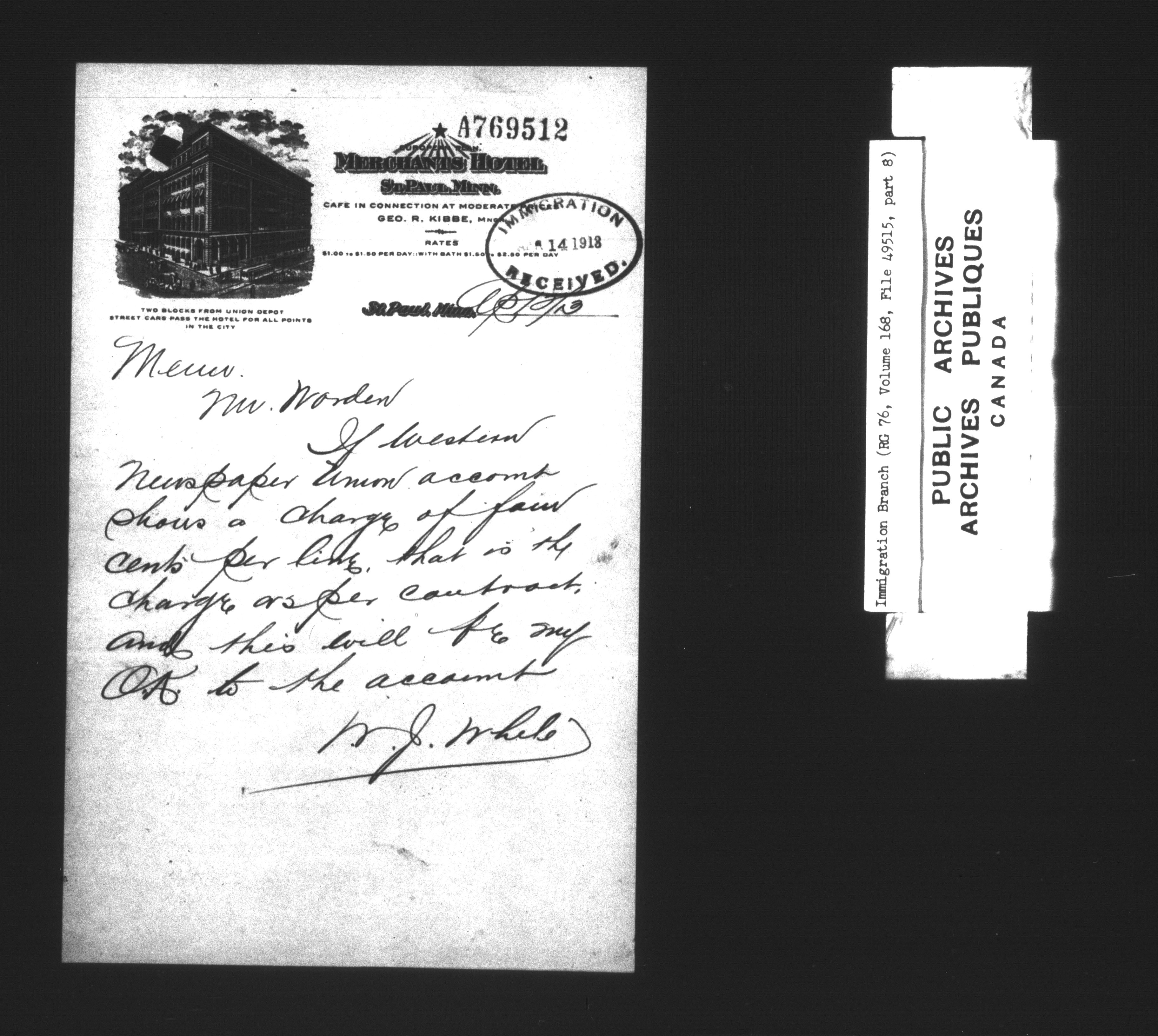Subject, policy and case files in the First Central Registry series of the Immigration Program, 1892-1950 - 7325