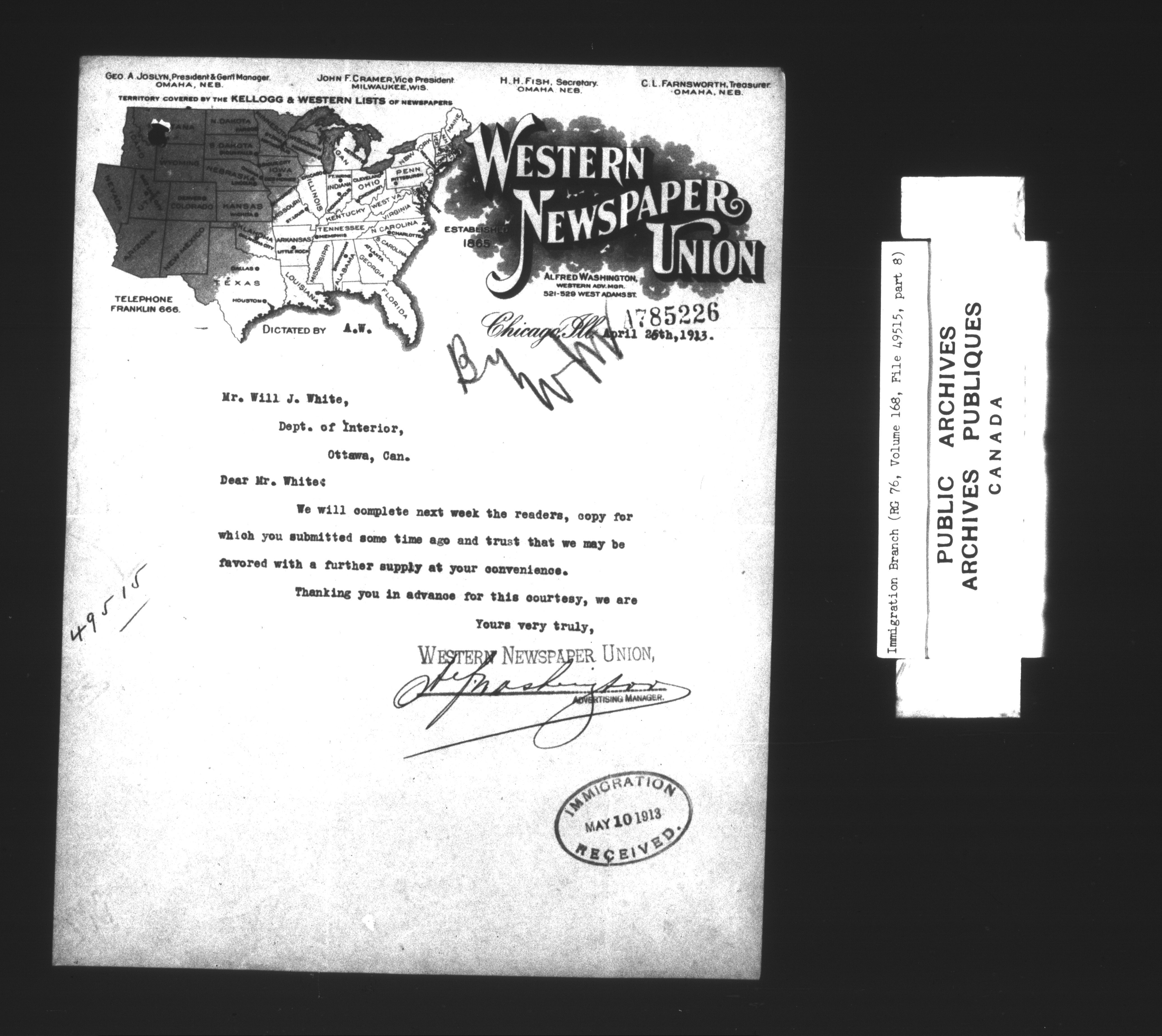 Subject, policy and case files in the First Central Registry series of the Immigration Program, 1892-1950 - 7325