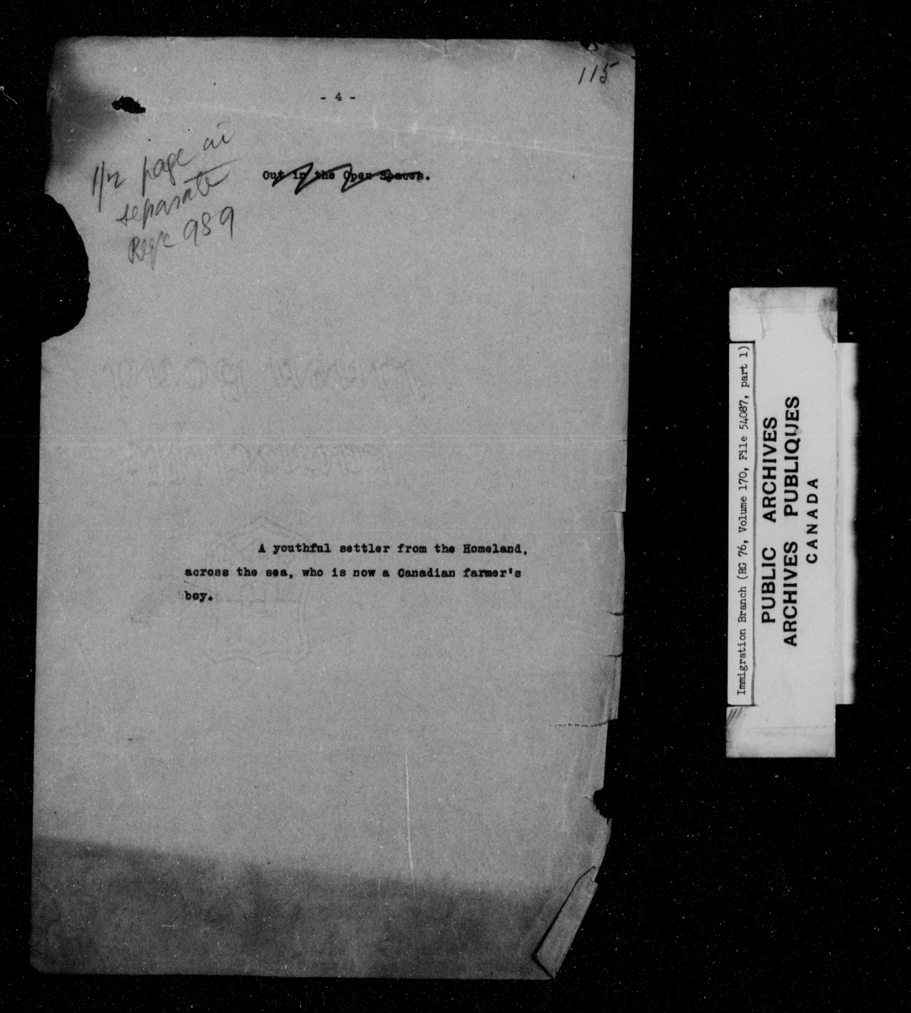Subject, policy and case files in the First Central Registry series of the Immigration Program, 1892-1950 - 7327