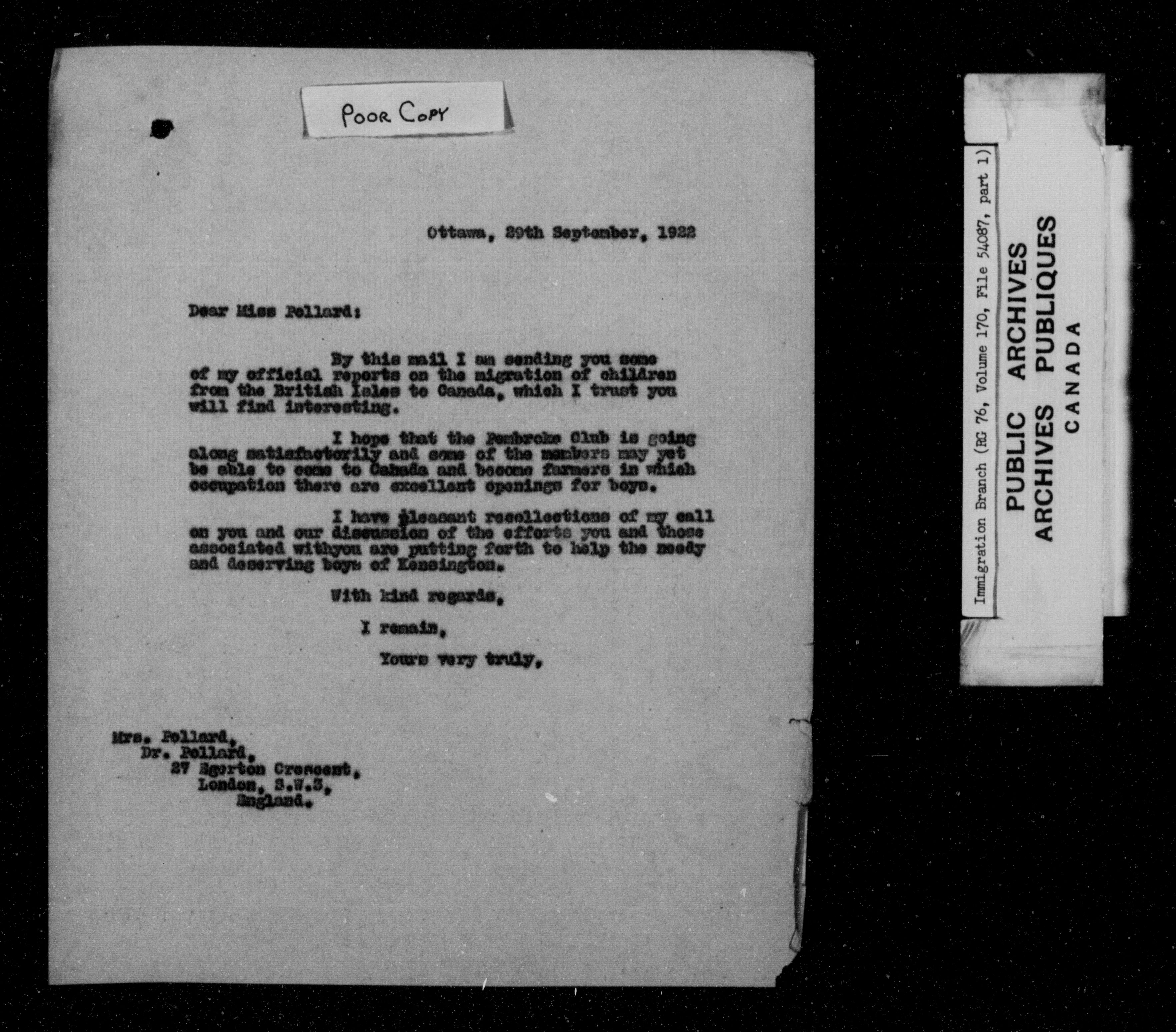 Subject, policy and case files in the First Central Registry series of the Immigration Program, 1892-1950 - 7327