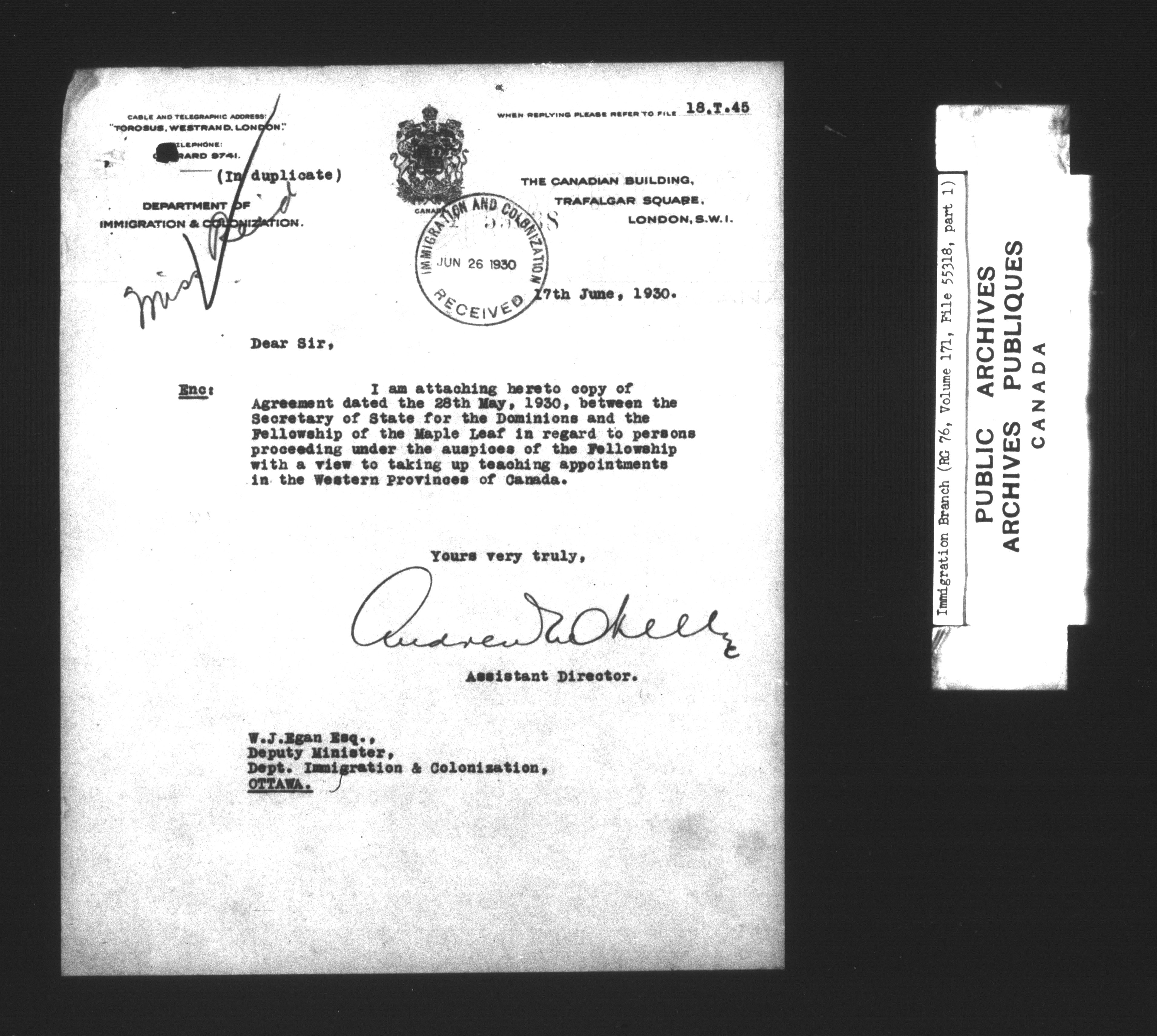 Subject, policy and case files in the First Central Registry series of the Immigration Program, 1892-1950 - 7328