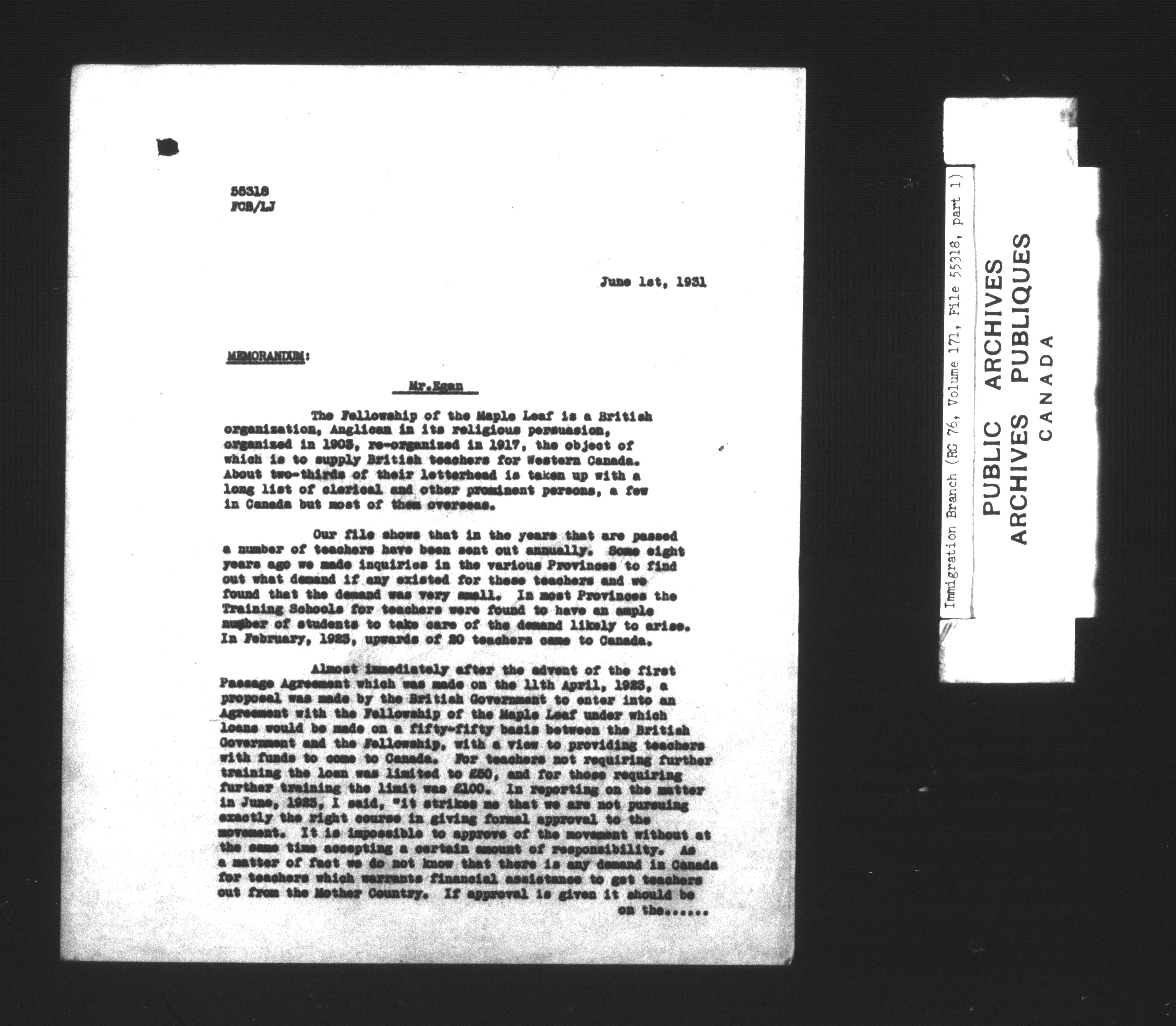 Subject, policy and case files in the First Central Registry series of the Immigration Program, 1892-1950 - 7328