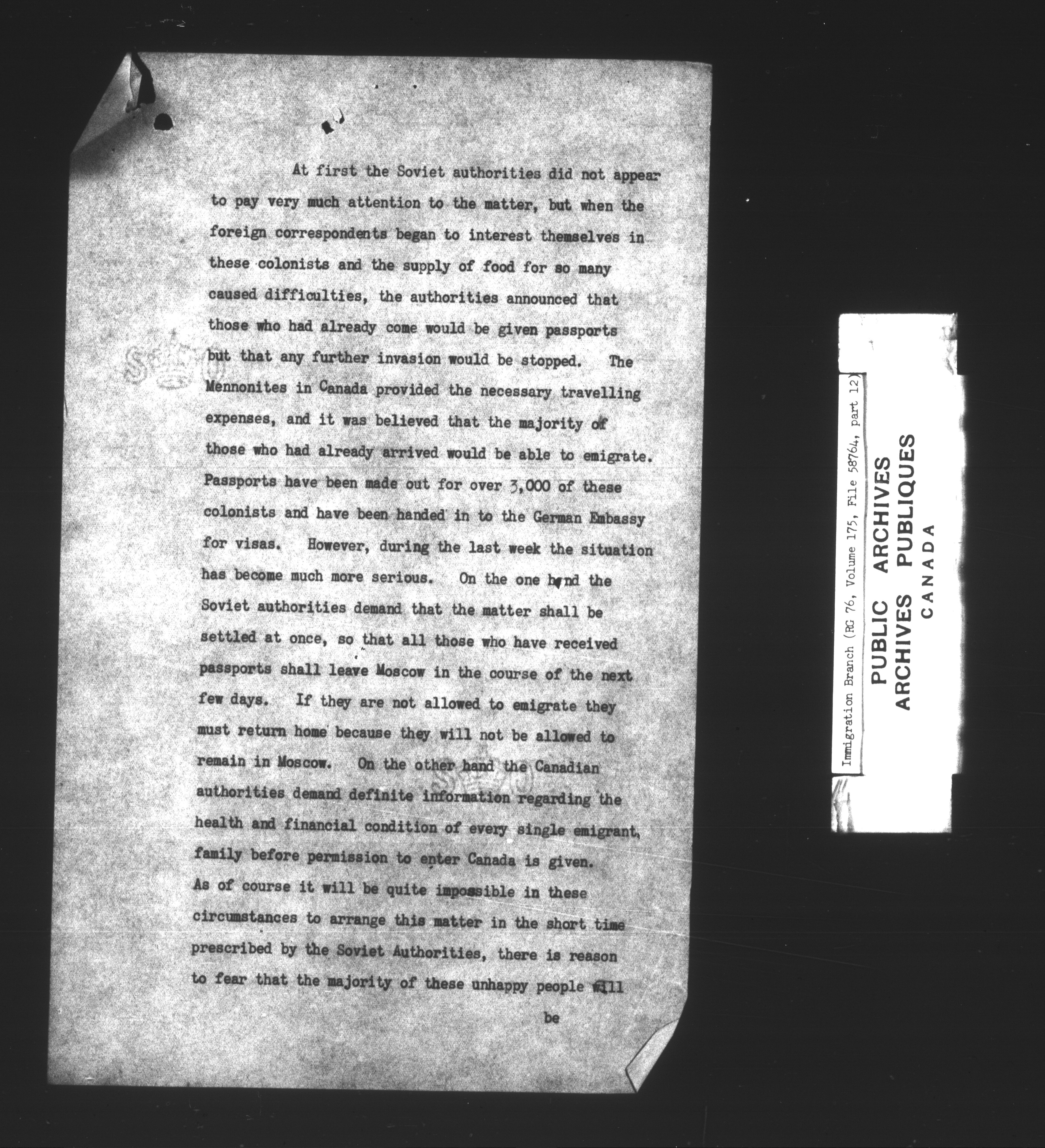 Subject, policy and case files in the First Central Registry series of the Immigration Program, 1892-1950 - 7331