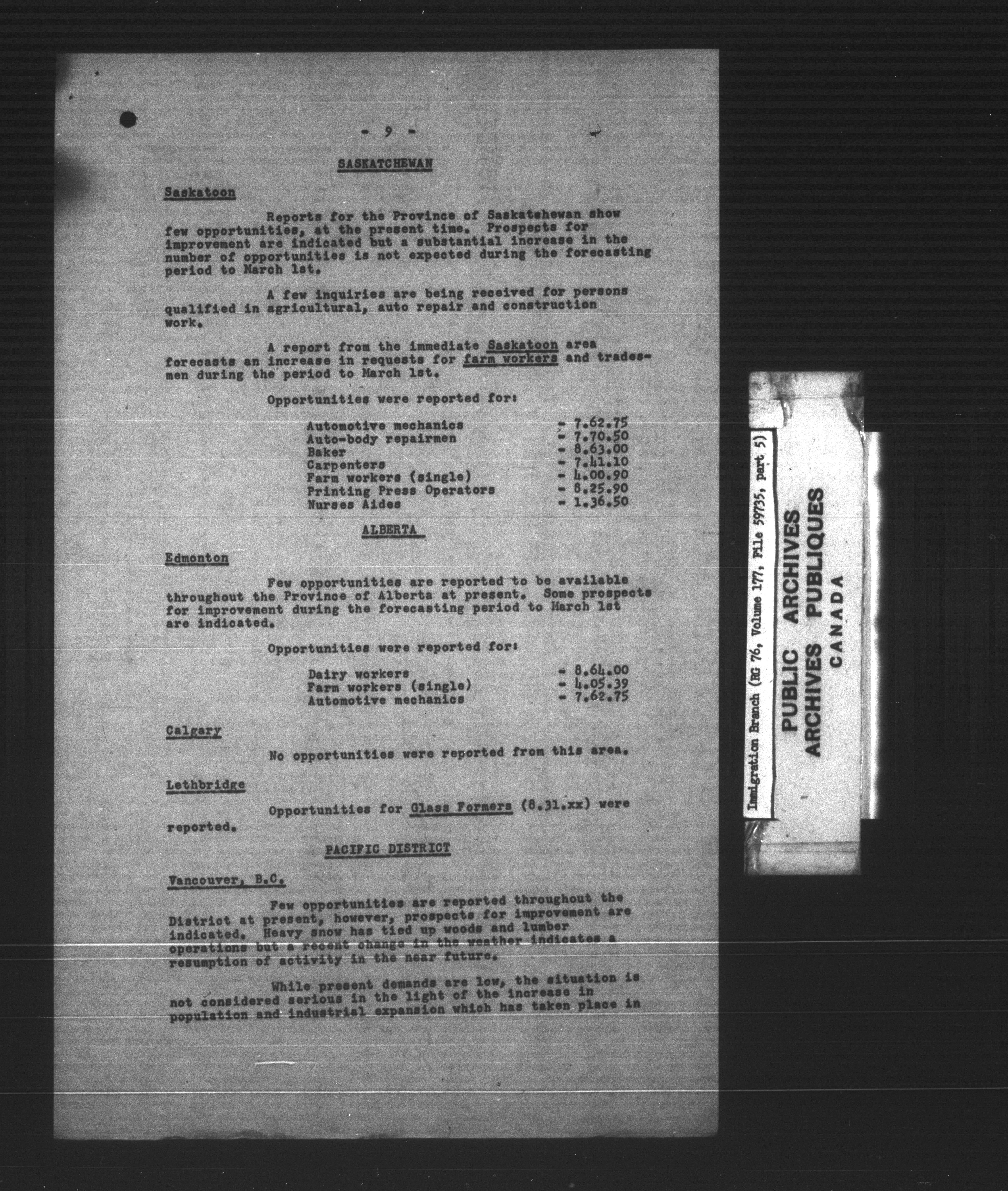 Subject, policy and case files in the First Central Registry series of the Immigration Program, 1892-1950 - 7333