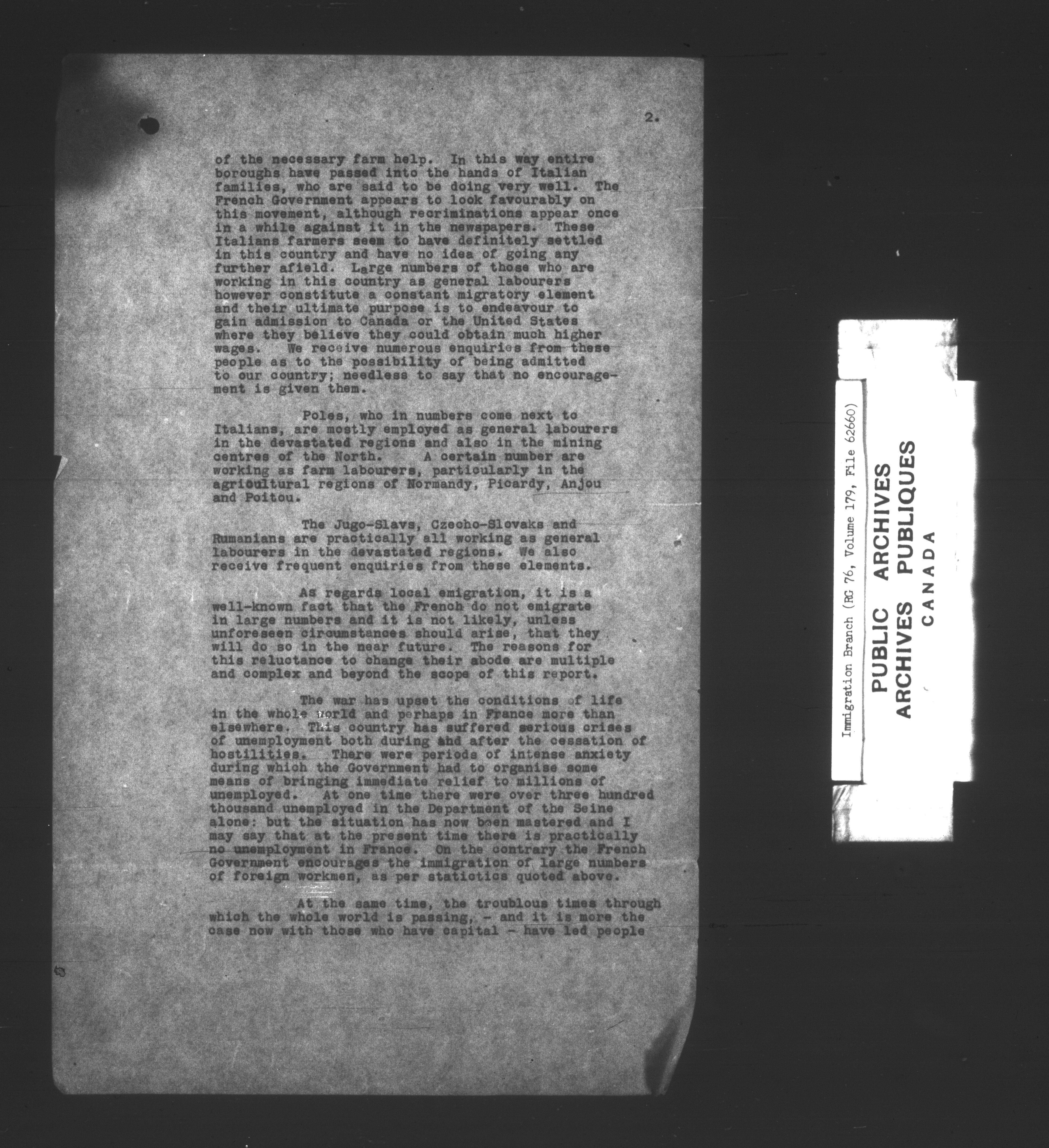 Subject, policy and case files in the First Central Registry series of the Immigration Program, 1892-1950 - 7335