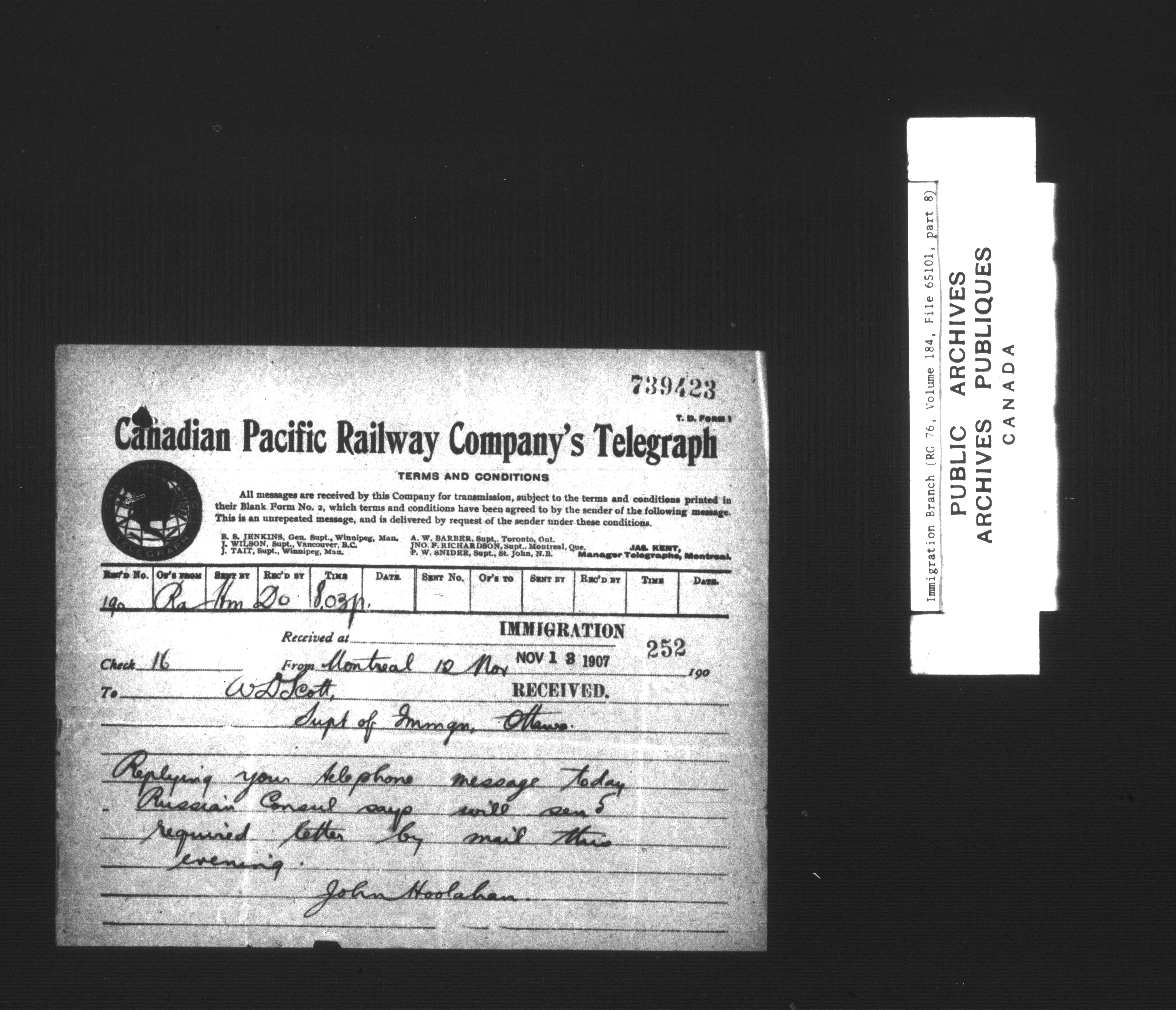 Subject, policy and case files in the First Central Registry series of the Immigration Program, 1892-1950 - 7340