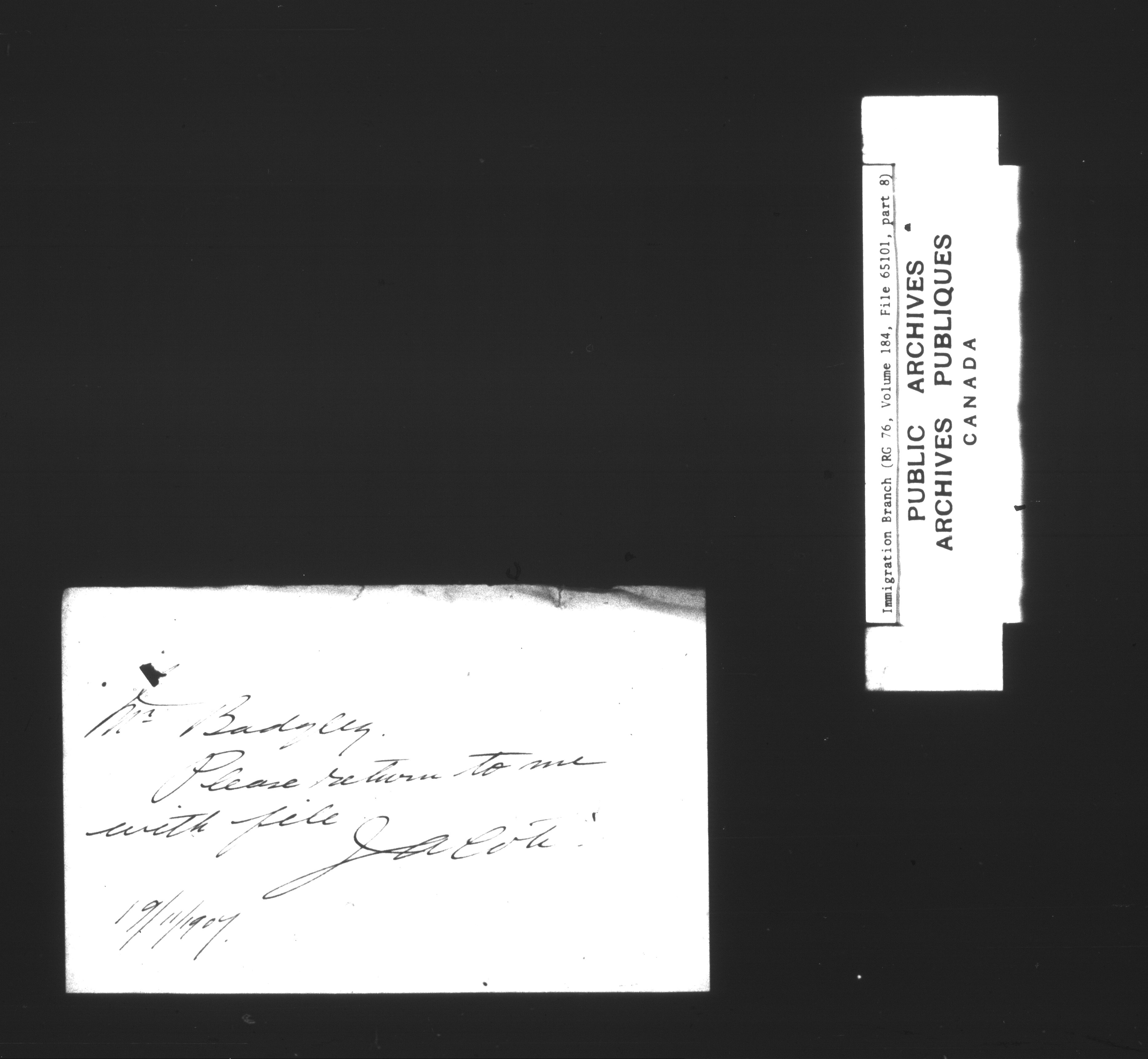 Subject, policy and case files in the First Central Registry series of the Immigration Program, 1892-1950 - 7340