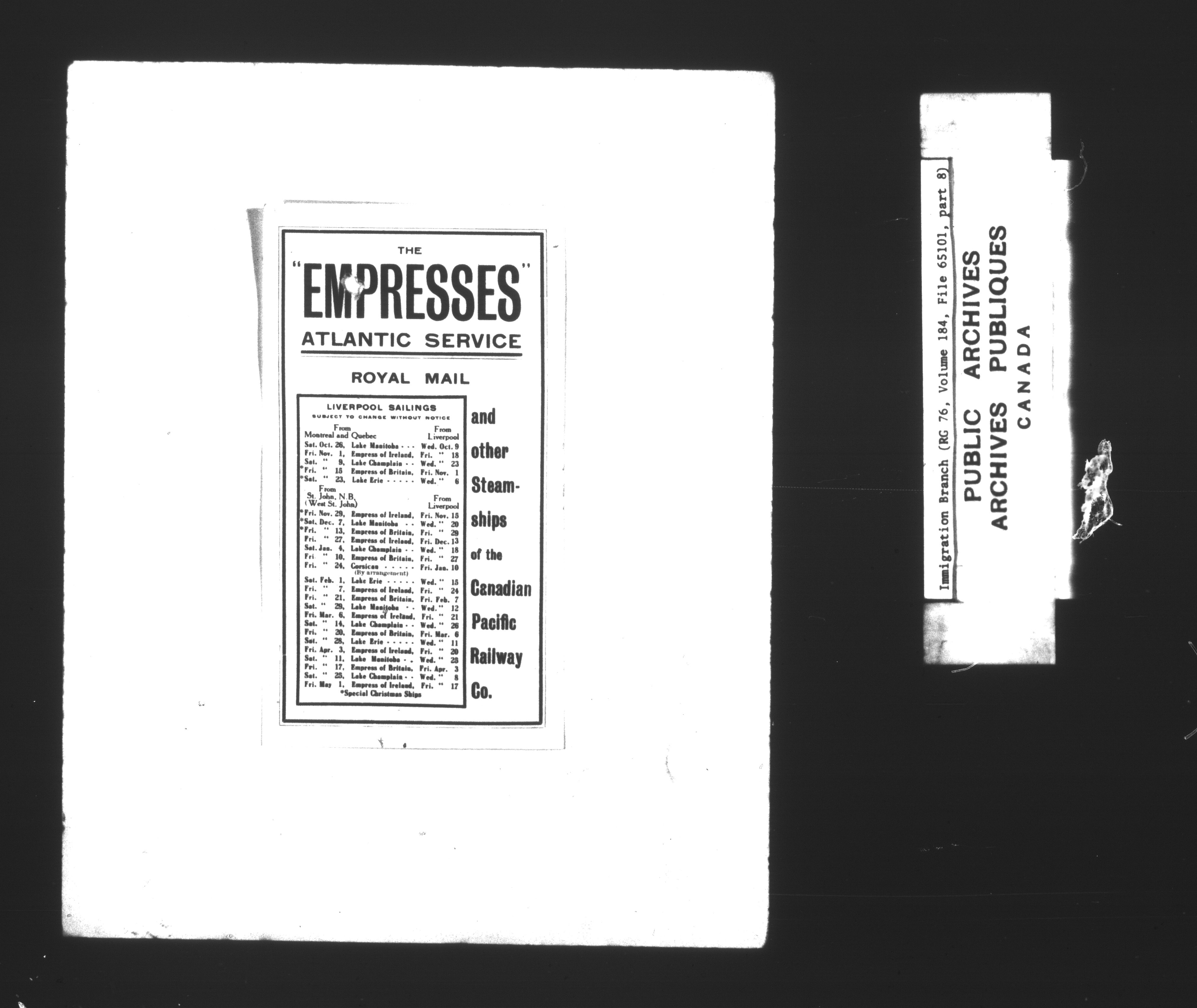 Subject, policy and case files in the First Central Registry series of the Immigration Program, 1892-1950 - 7340