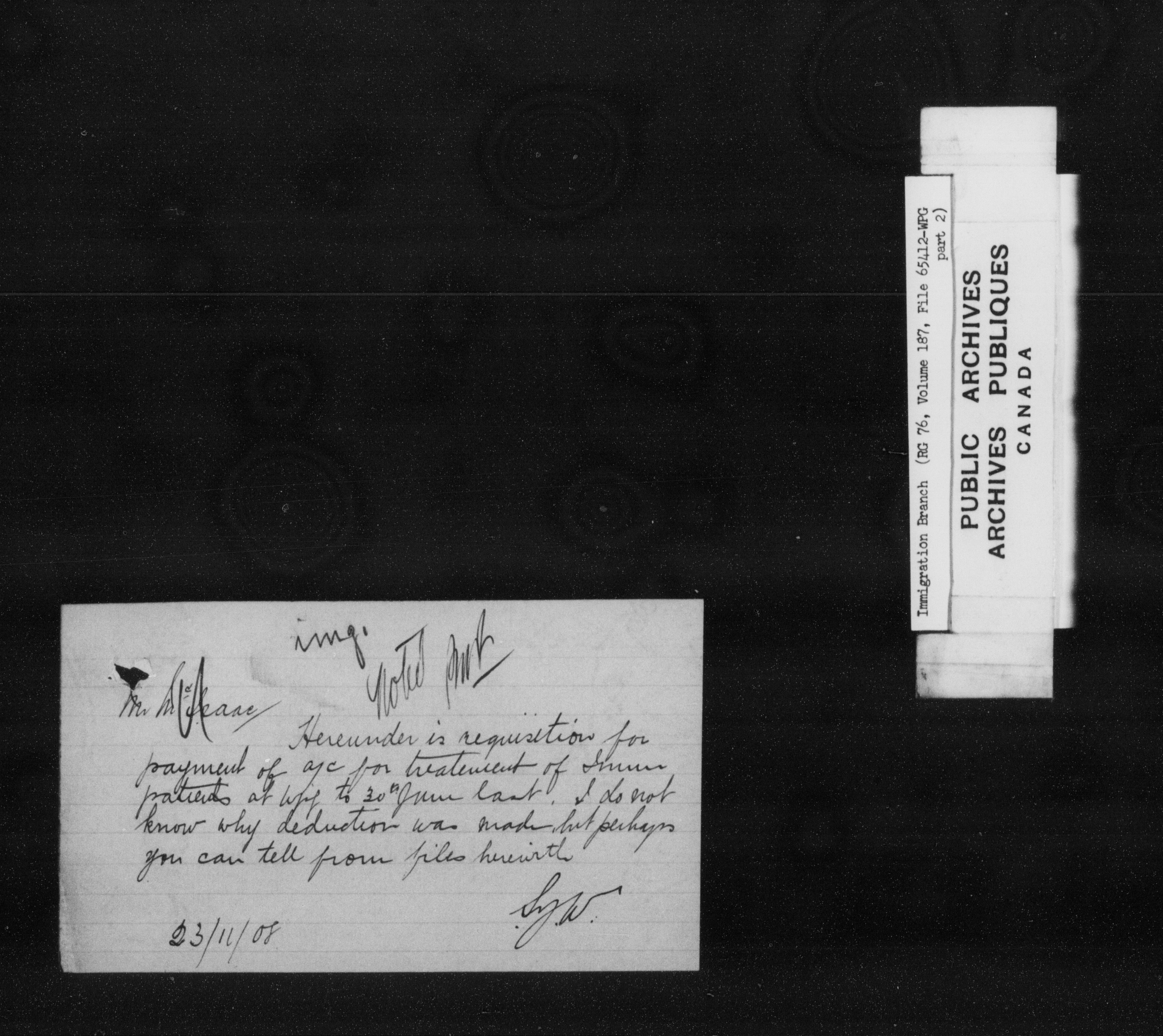 Subject, policy and case files in the First Central Registry series of the Immigration Program, 1892-1950 - 7341