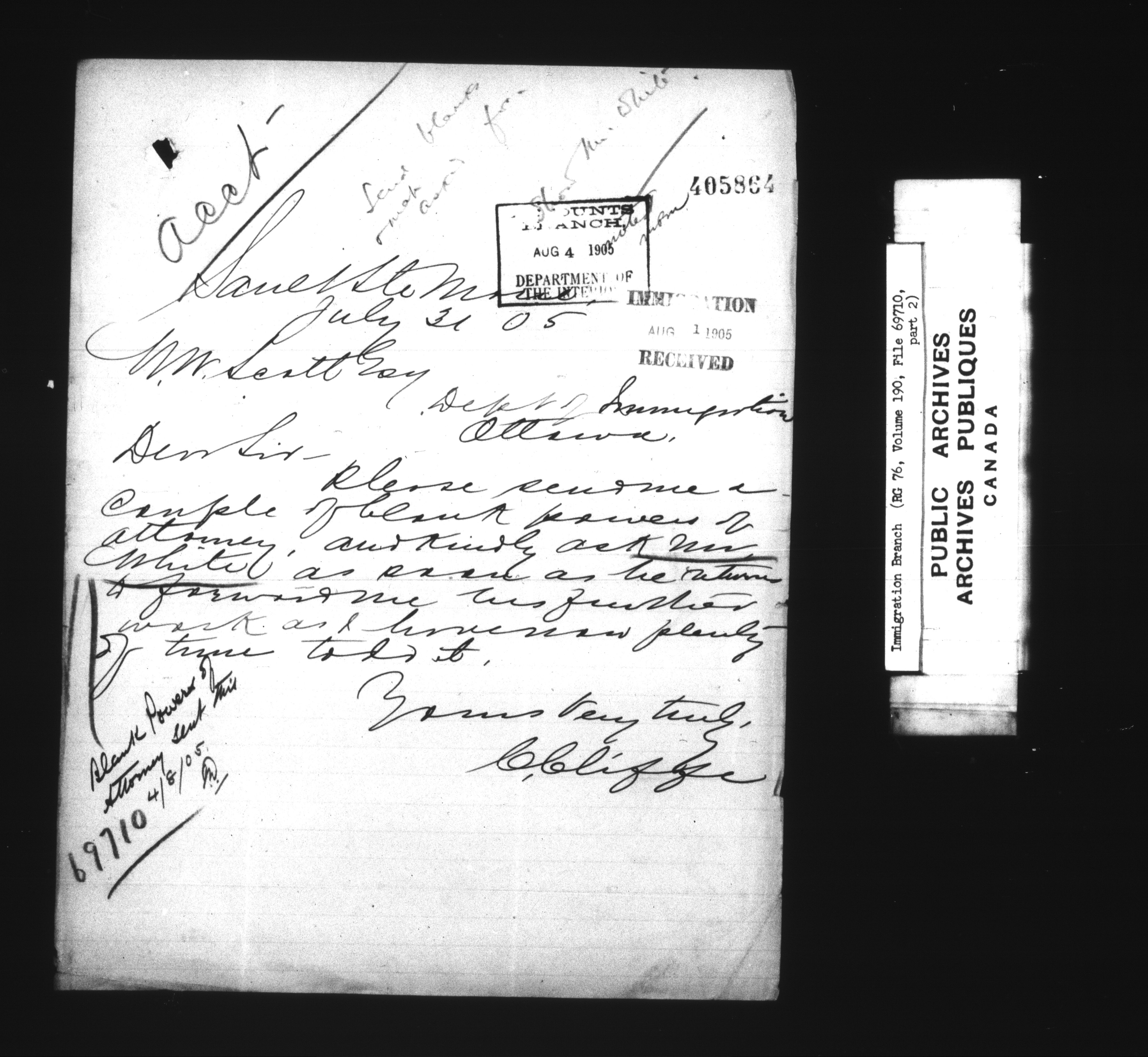 Subject, policy and case files in the First Central Registry series of the Immigration Program, 1892-1950 - 7344