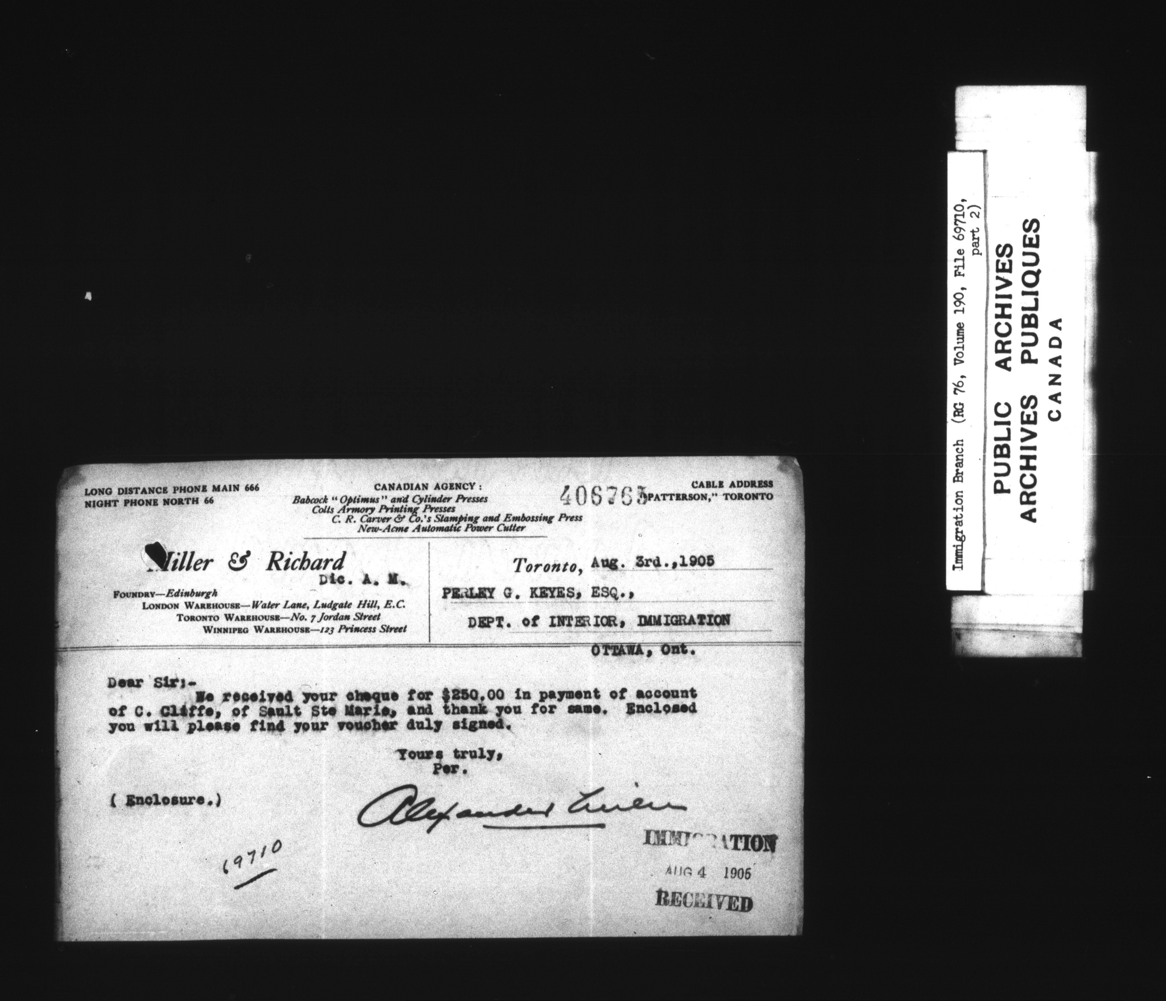 Subject, policy and case files in the First Central Registry series of the Immigration Program, 1892-1950 - 7344
