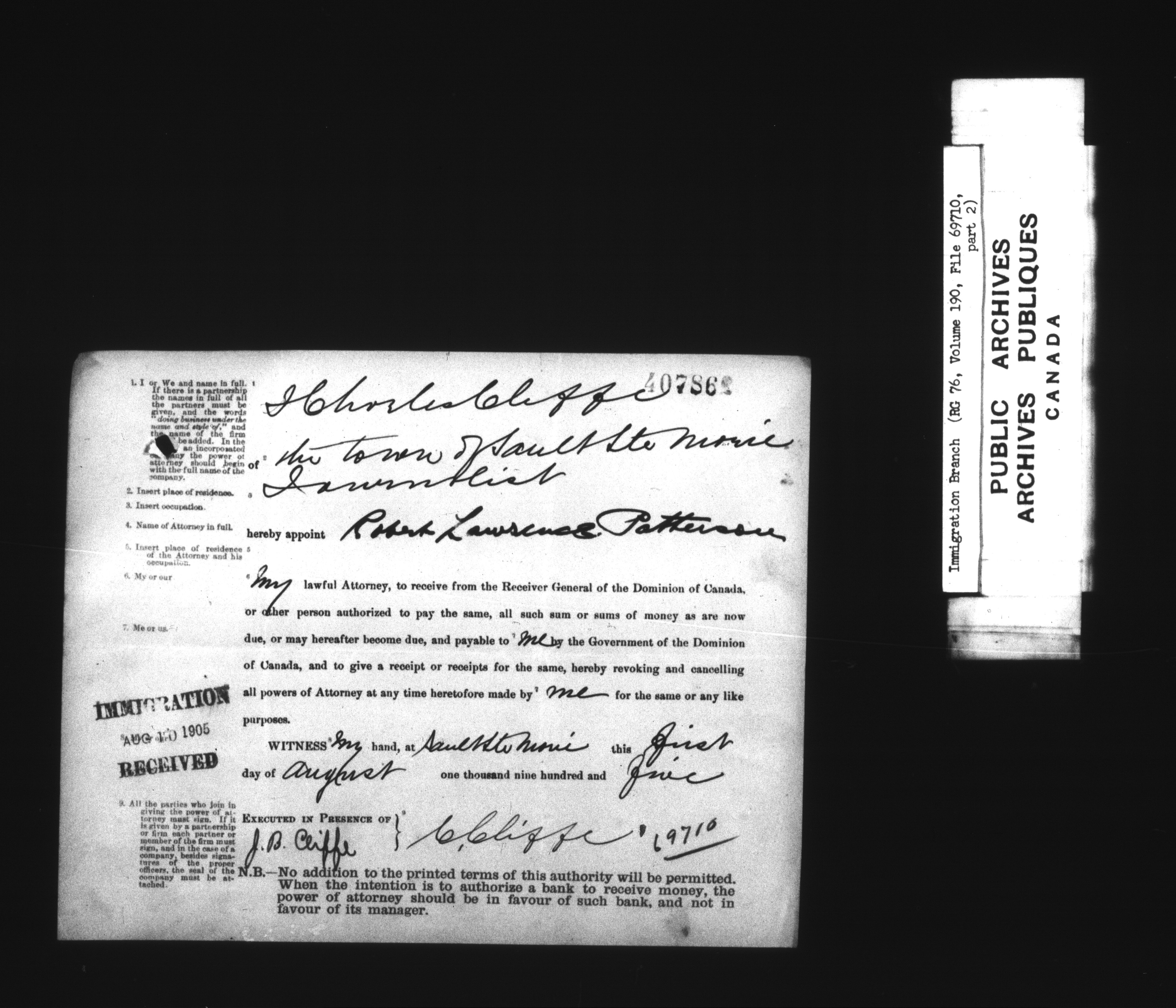 Subject, policy and case files in the First Central Registry series of the Immigration Program, 1892-1950 - 7344