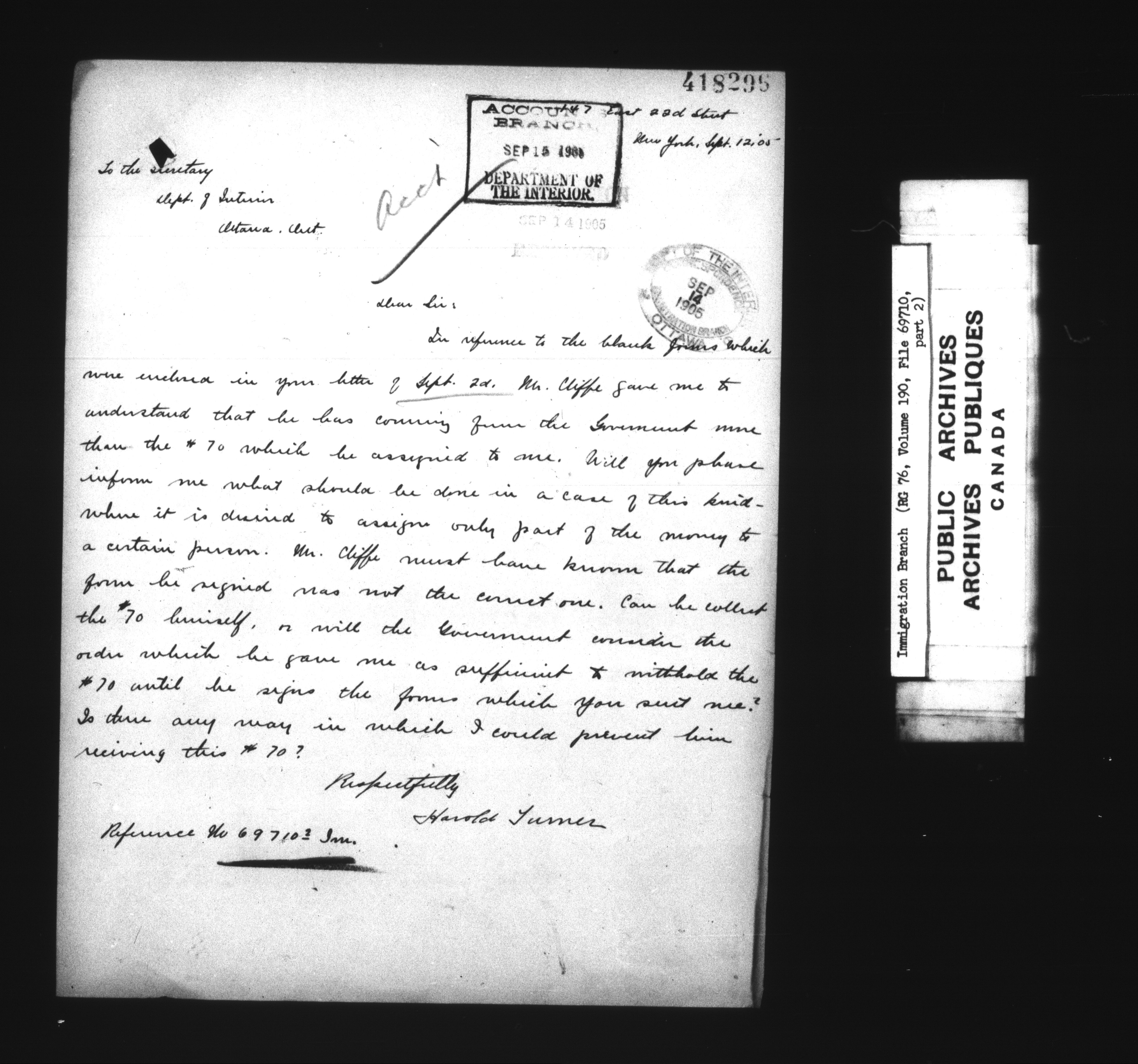 Subject, policy and case files in the First Central Registry series of the Immigration Program, 1892-1950 - 7344