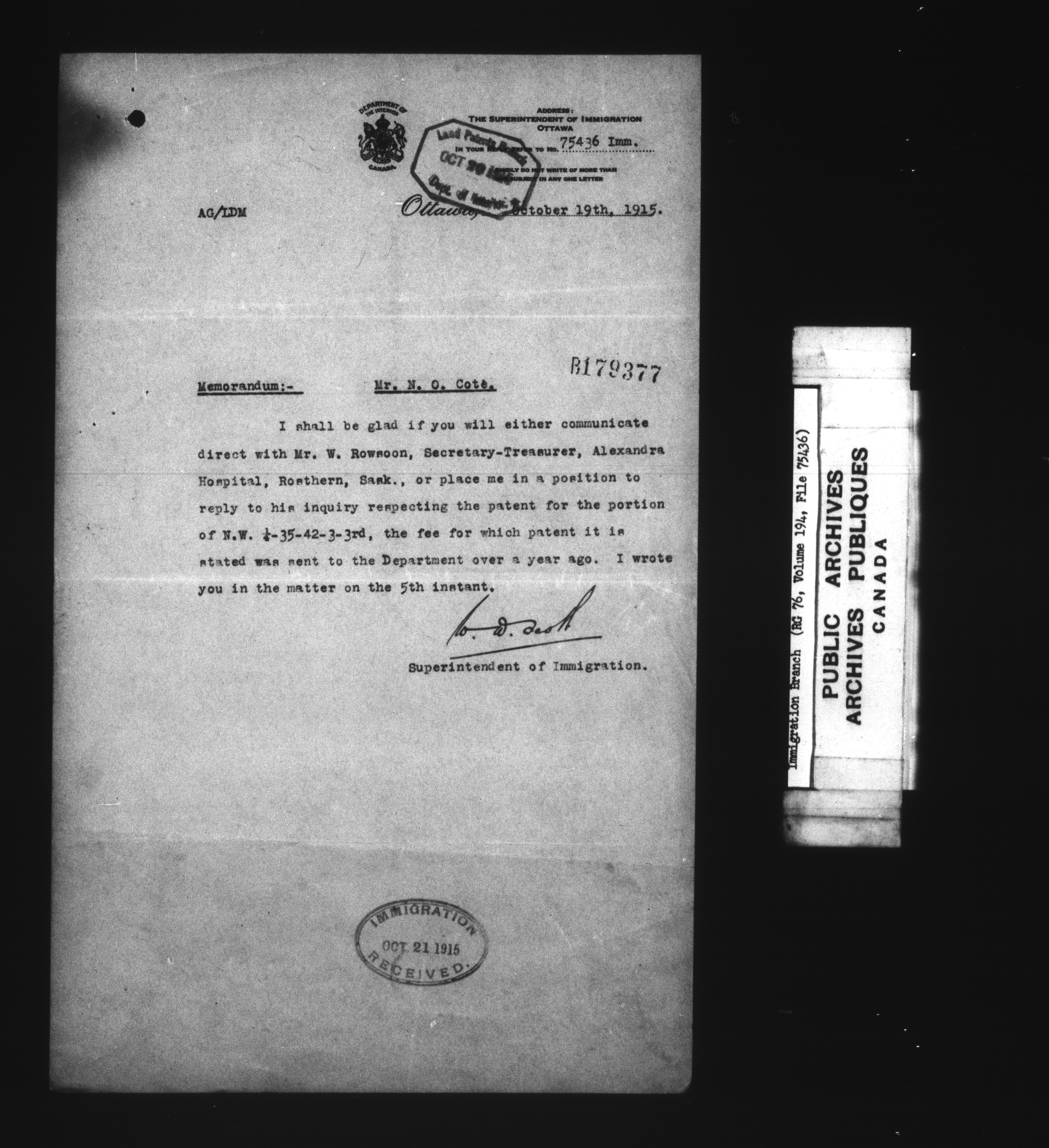 Subject, policy and case files in the First Central Registry series of the Immigration Program, 1892-1950 - 7348