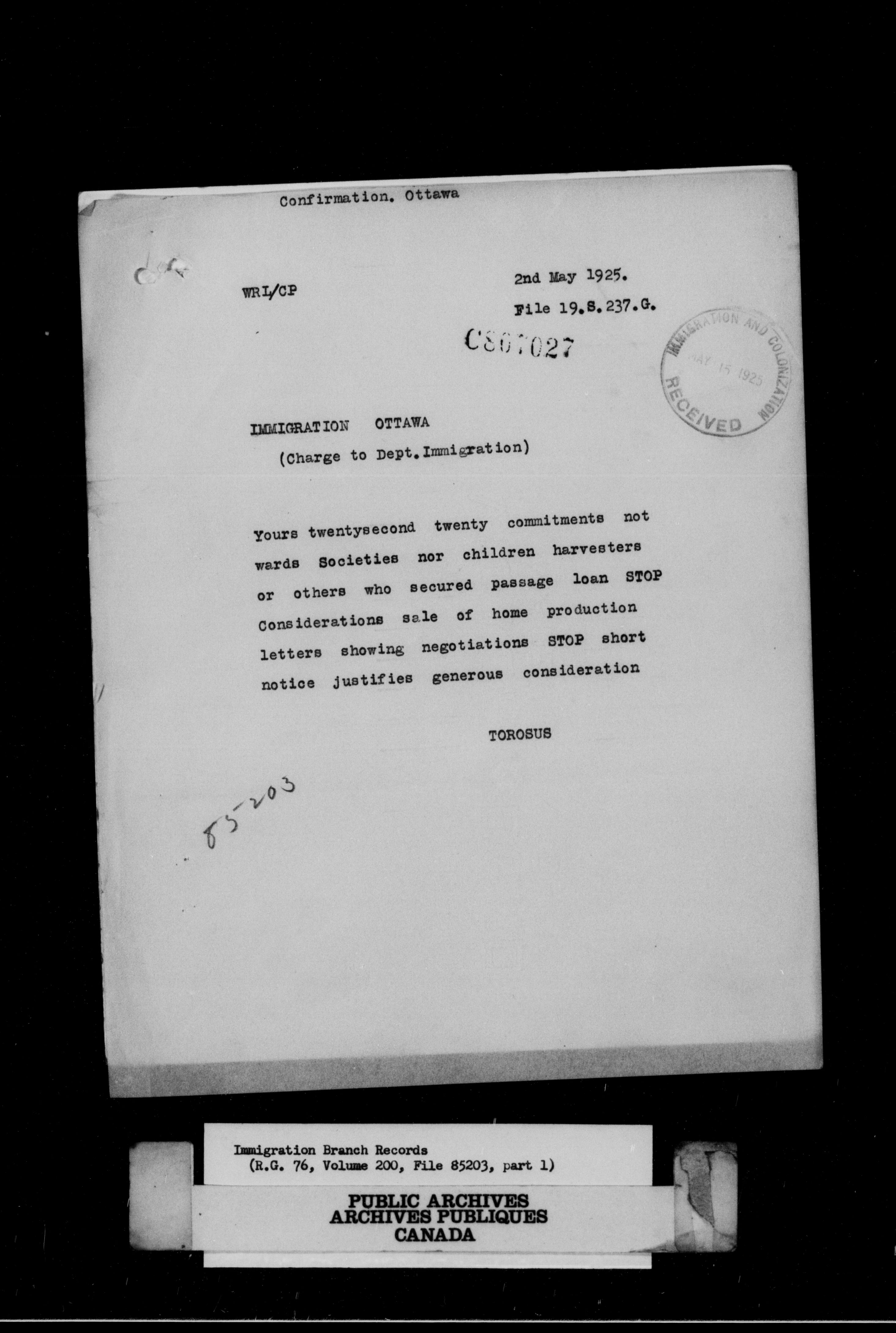Subject, policy and case files in the First Central Registry series of the Immigration Program, 1892-1950 - 7354