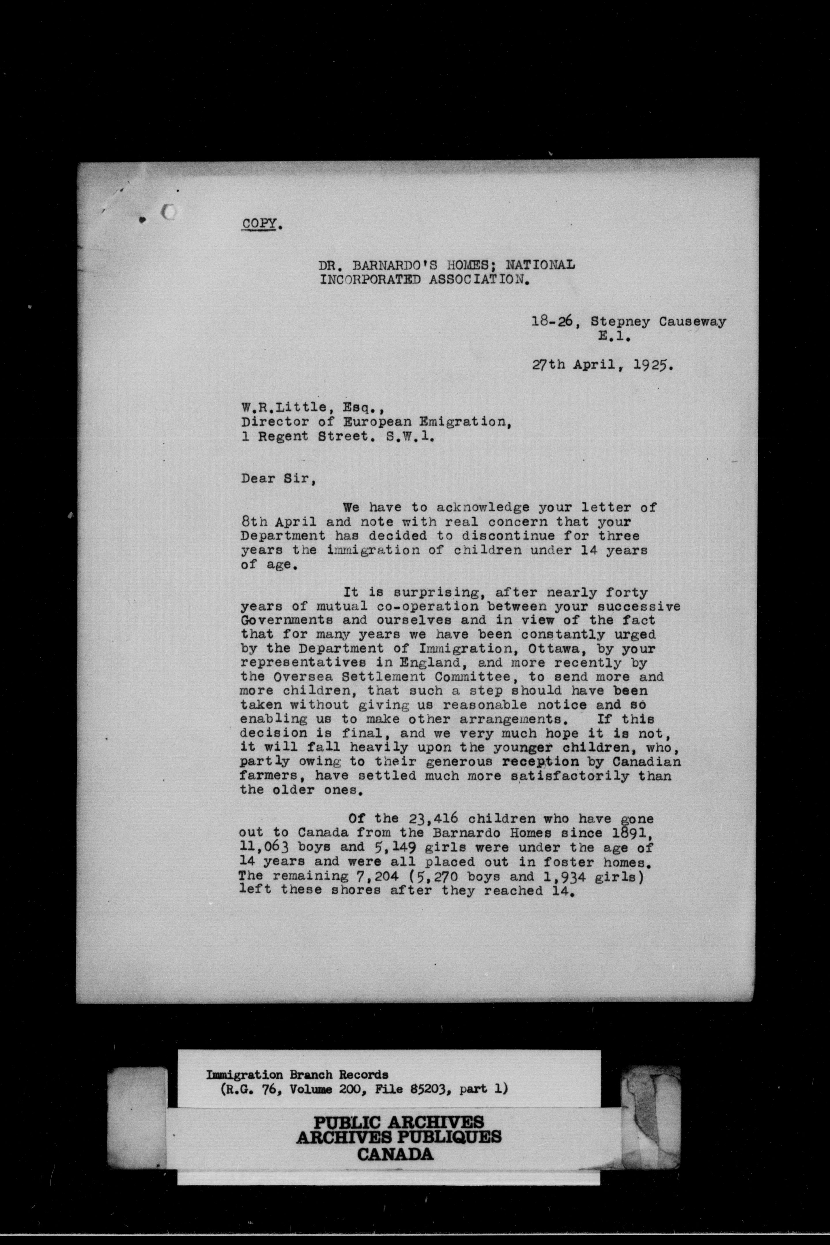 Subject, policy and case files in the First Central Registry series of the Immigration Program, 1892-1950 - 7354
