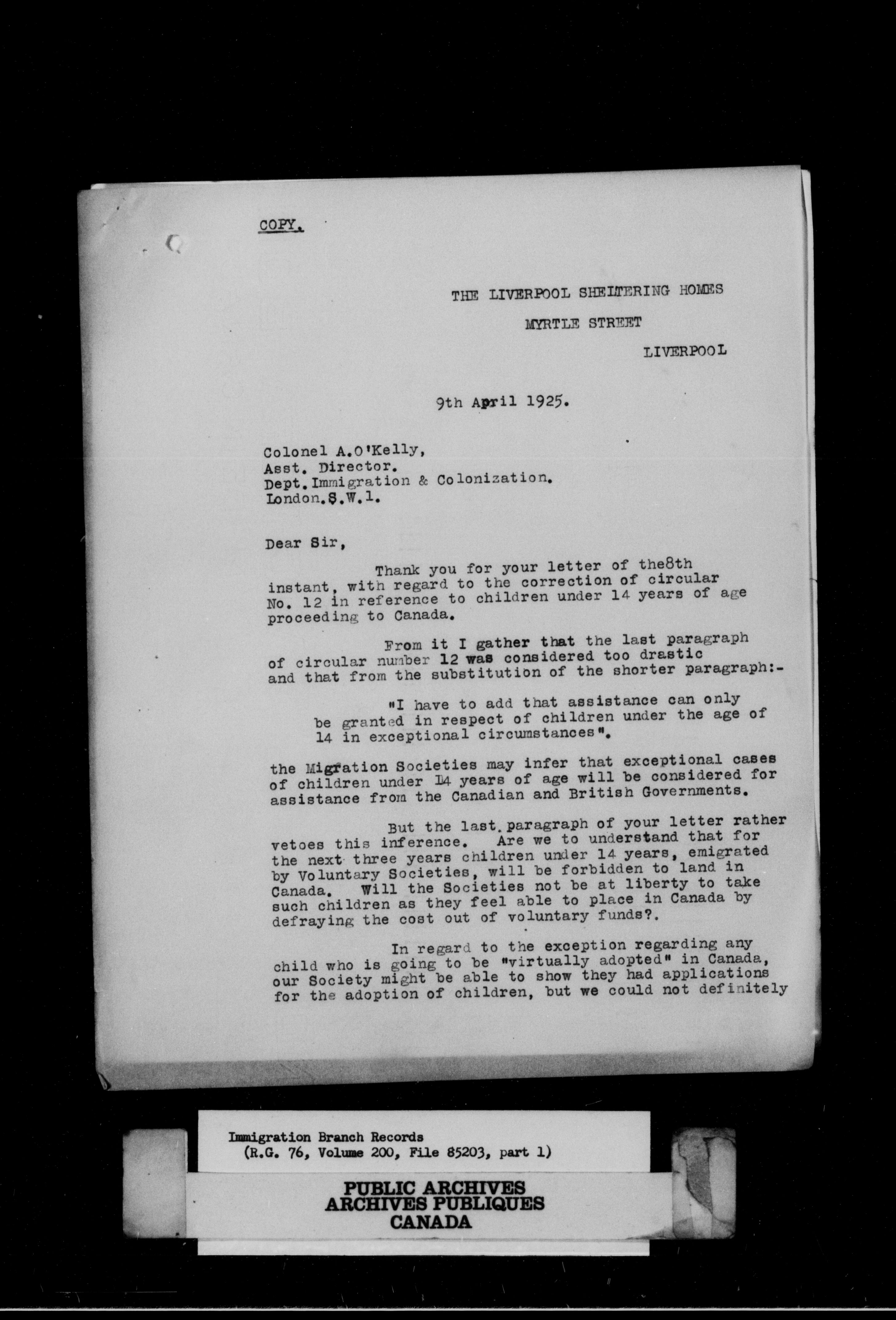 Subject, policy and case files in the First Central Registry series of the Immigration Program, 1892-1950 - 7354