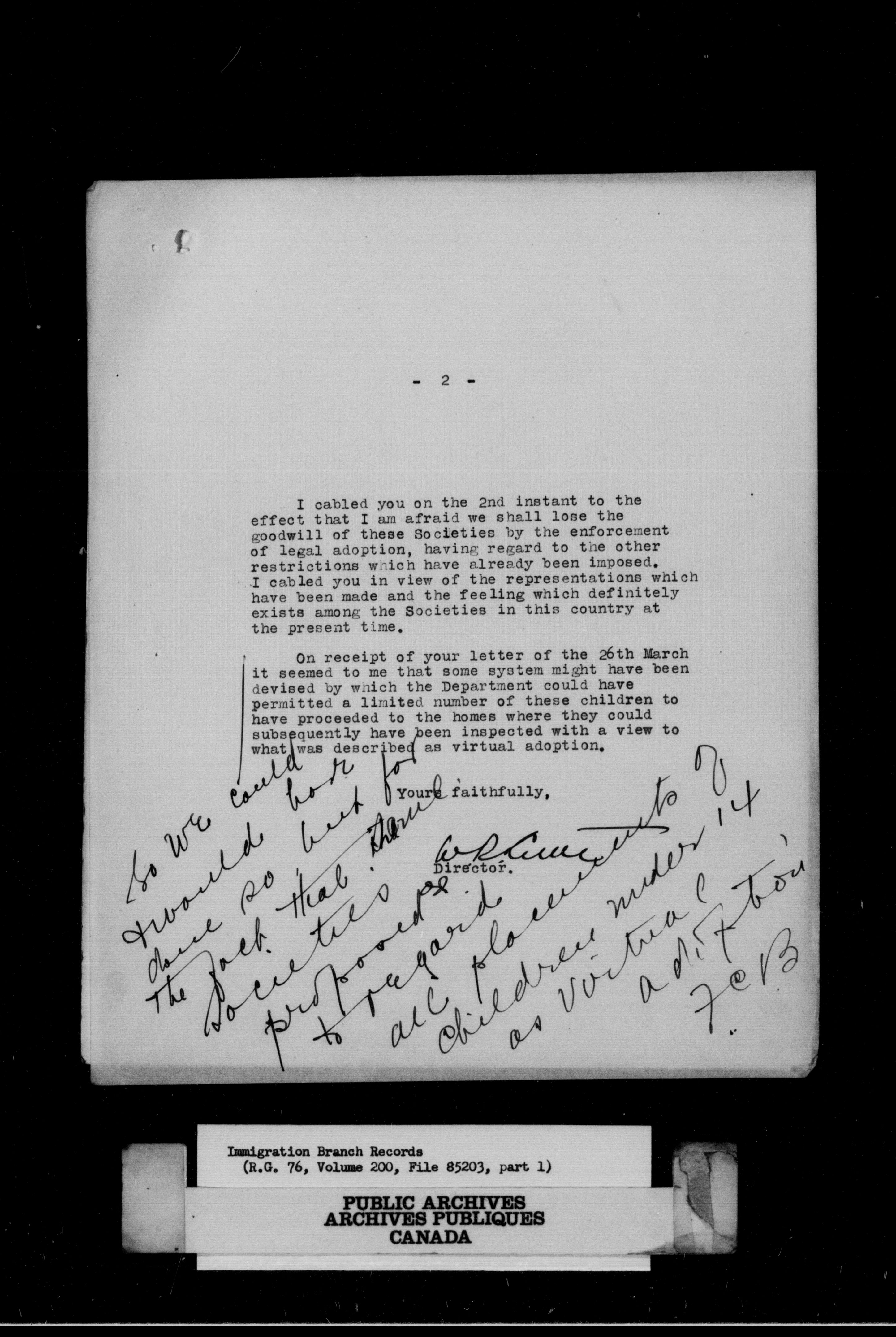 Subject, policy and case files in the First Central Registry series of the Immigration Program, 1892-1950 - 7354