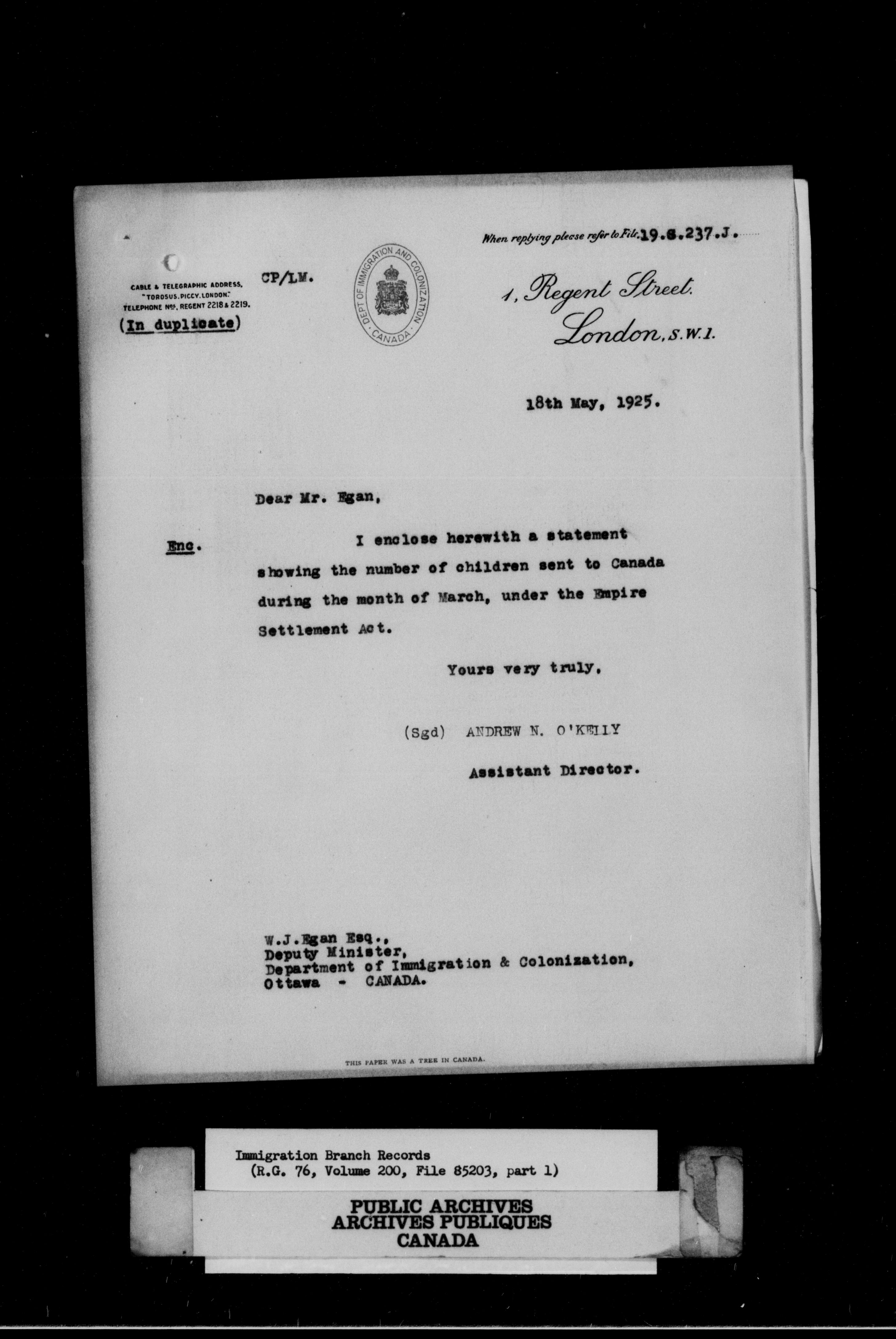 Subject, policy and case files in the First Central Registry series of the Immigration Program, 1892-1950 - 7354