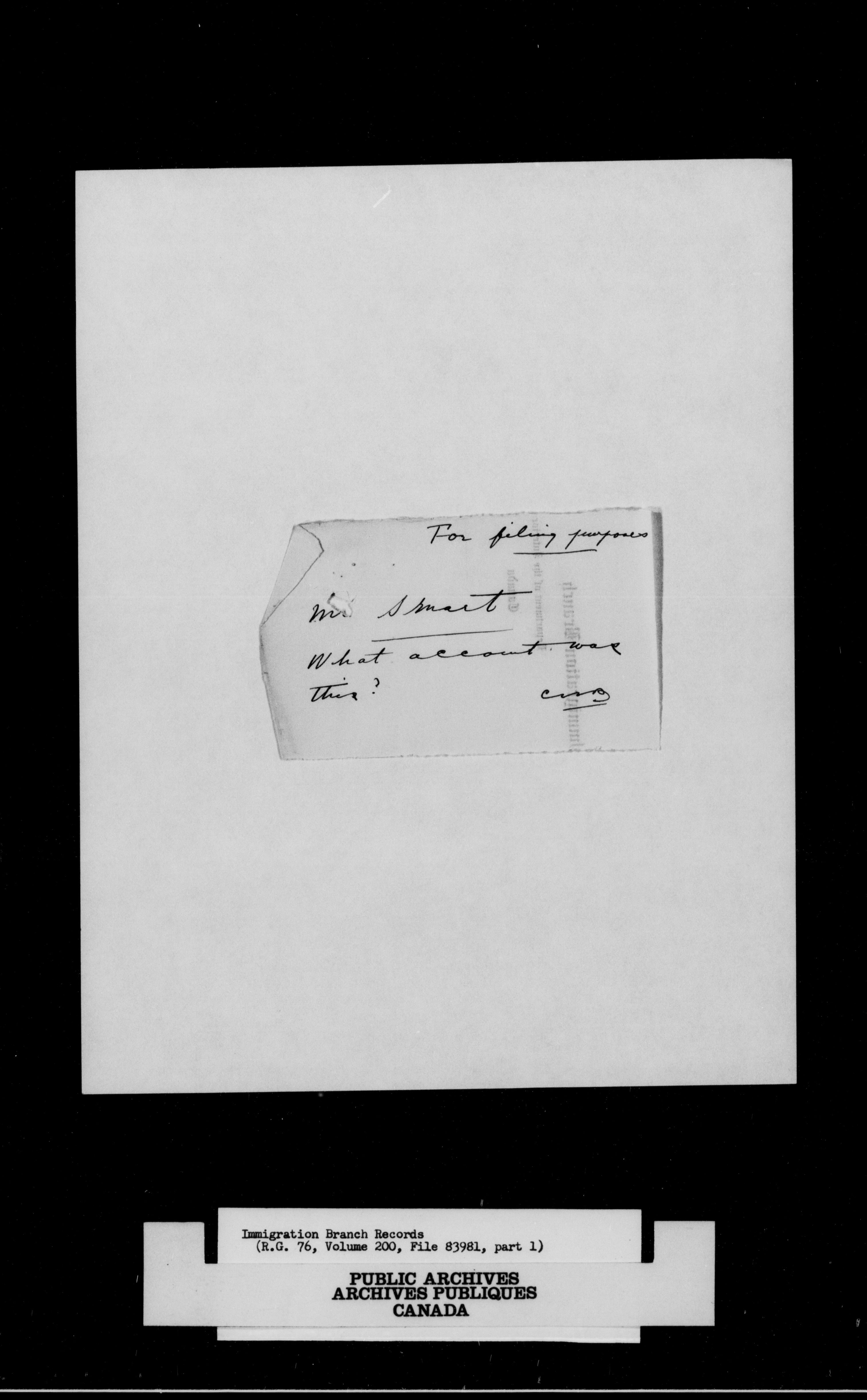 Subject, policy and case files in the First Central Registry series of the Immigration Program, 1892-1950 - 7354