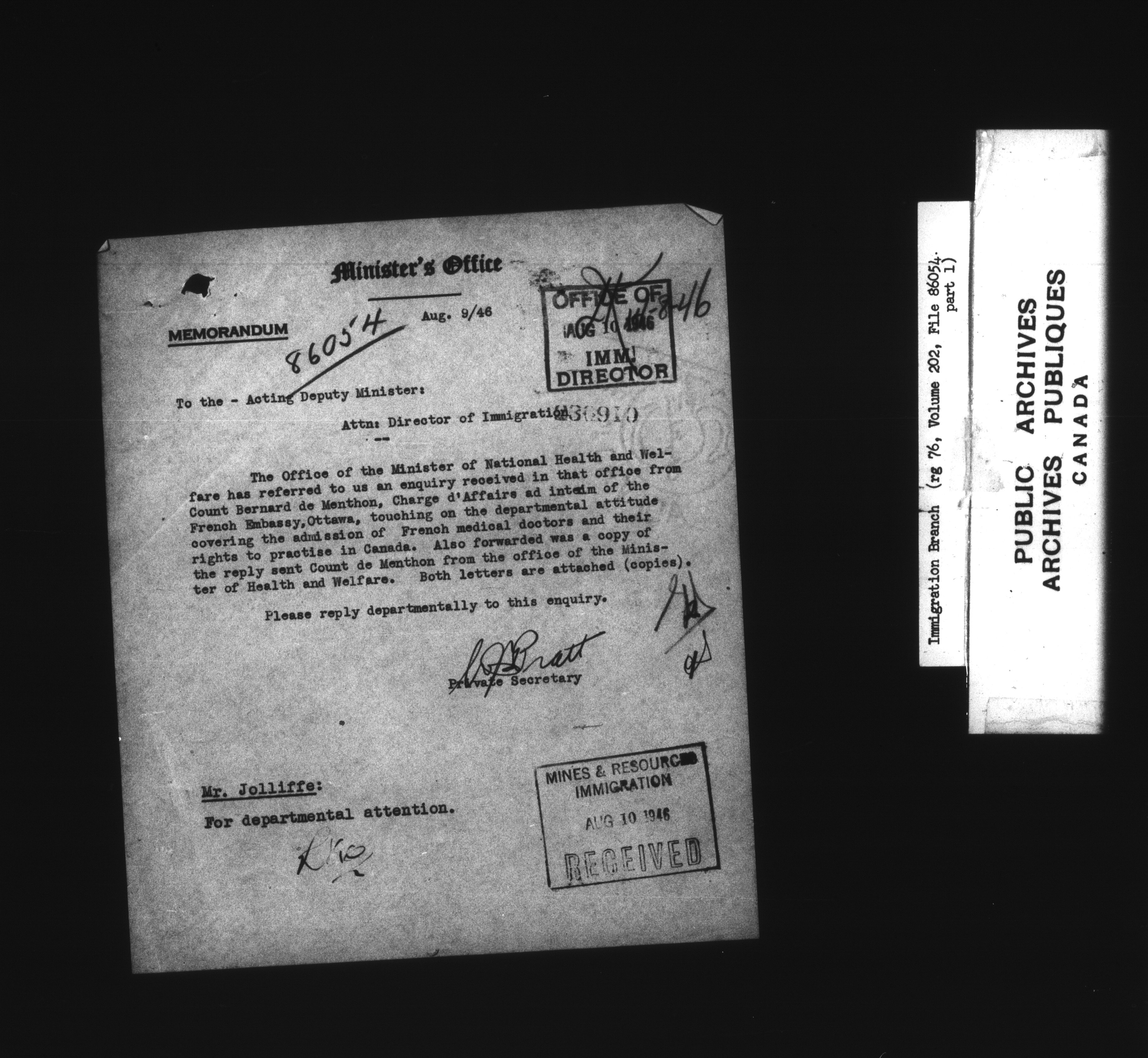 Subject, policy and case files in the First Central Registry series of the Immigration Program, 1892-1950 - 7356