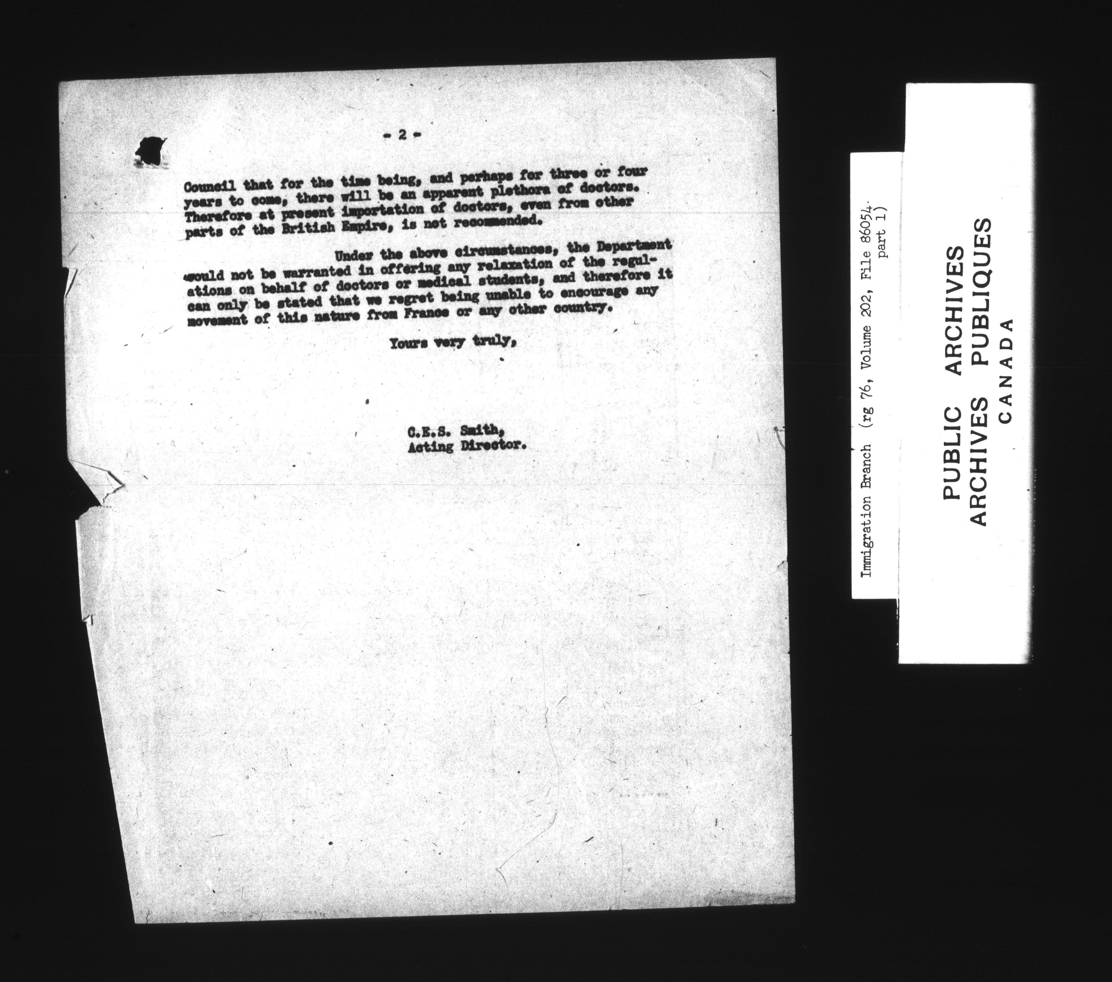 Subject, policy and case files in the First Central Registry series of the Immigration Program, 1892-1950 - 7356
