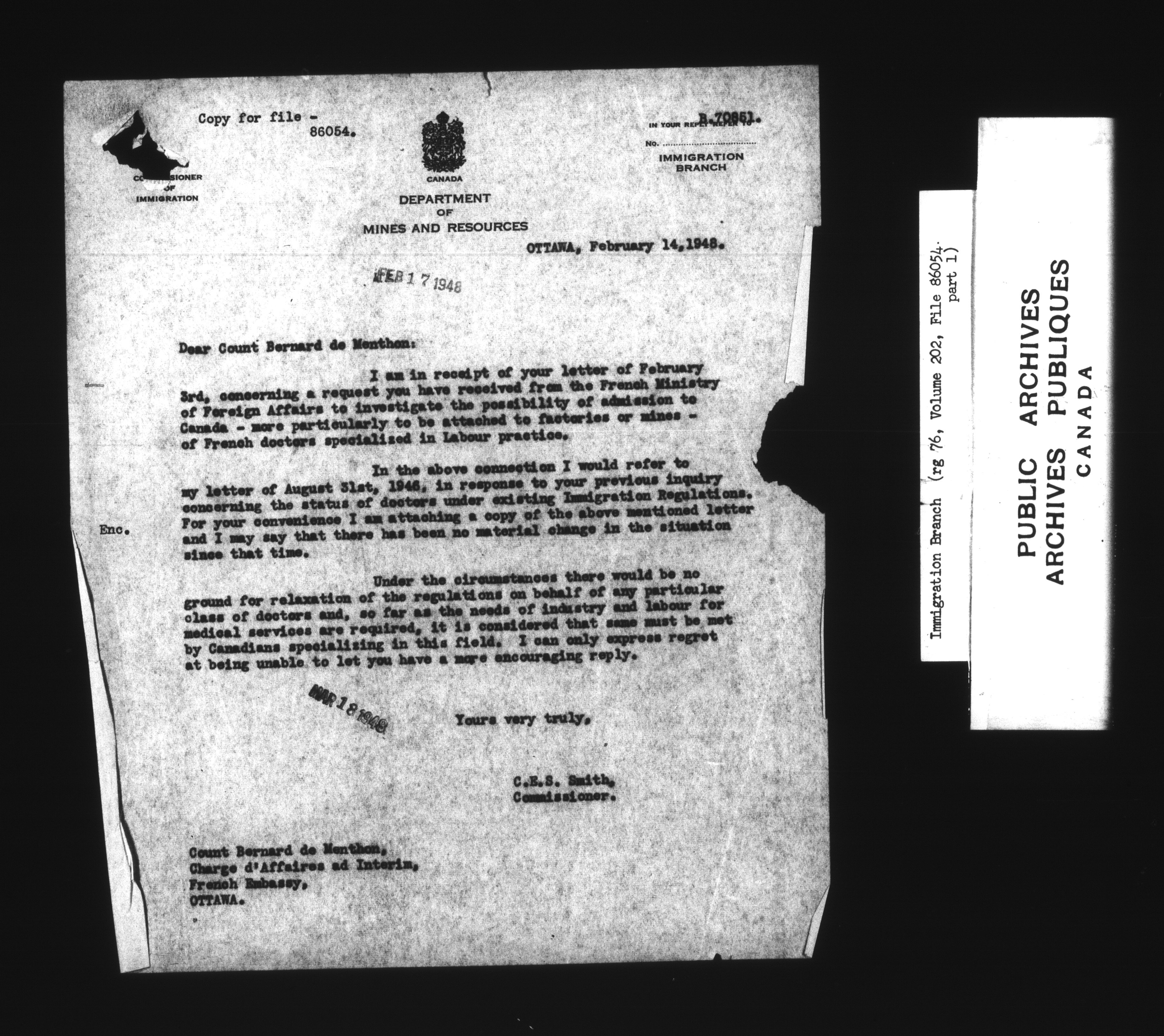 Subject, policy and case files in the First Central Registry series of the Immigration Program, 1892-1950 - 7356