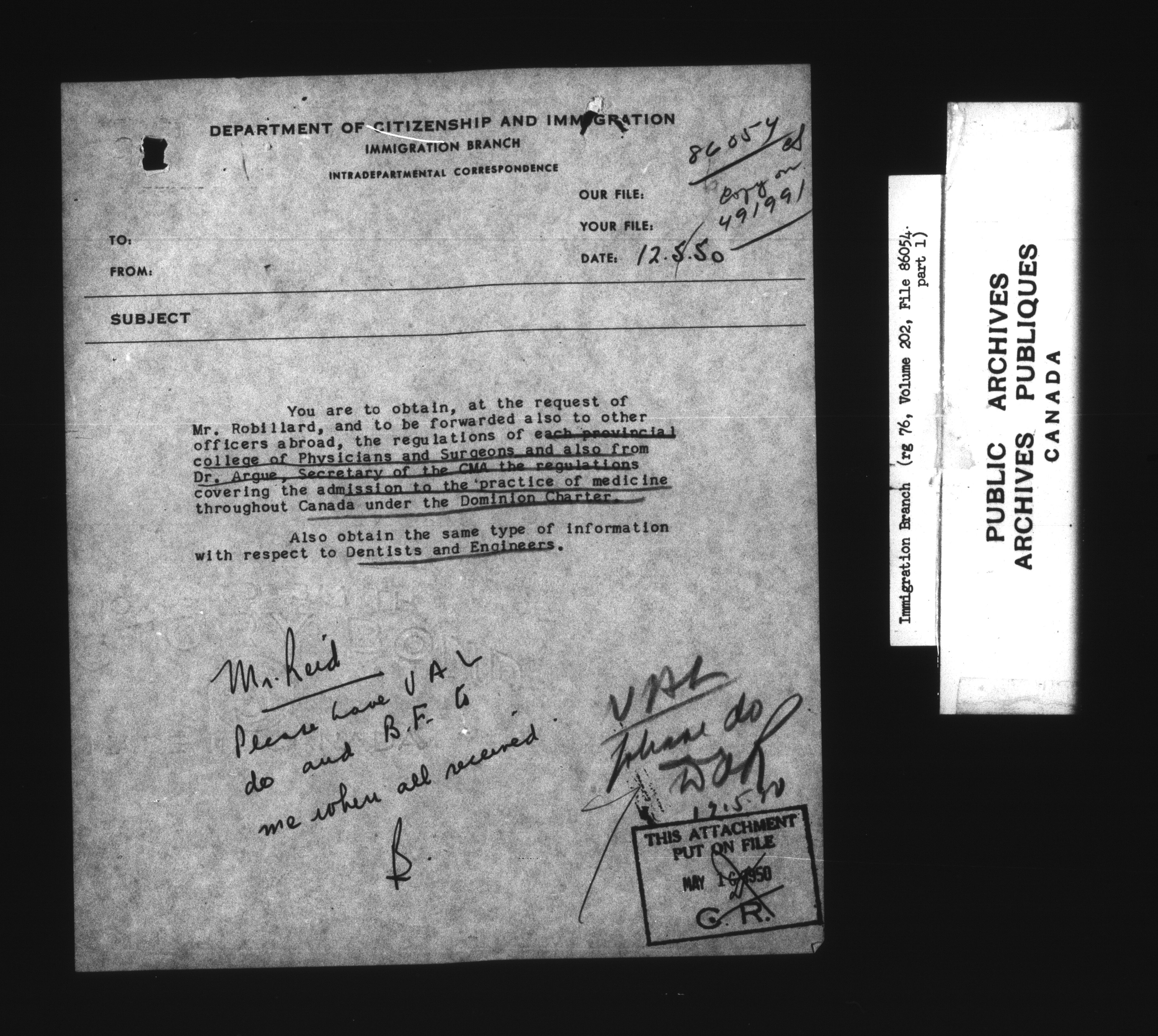Subject, policy and case files in the First Central Registry series of the Immigration Program, 1892-1950 - 7356