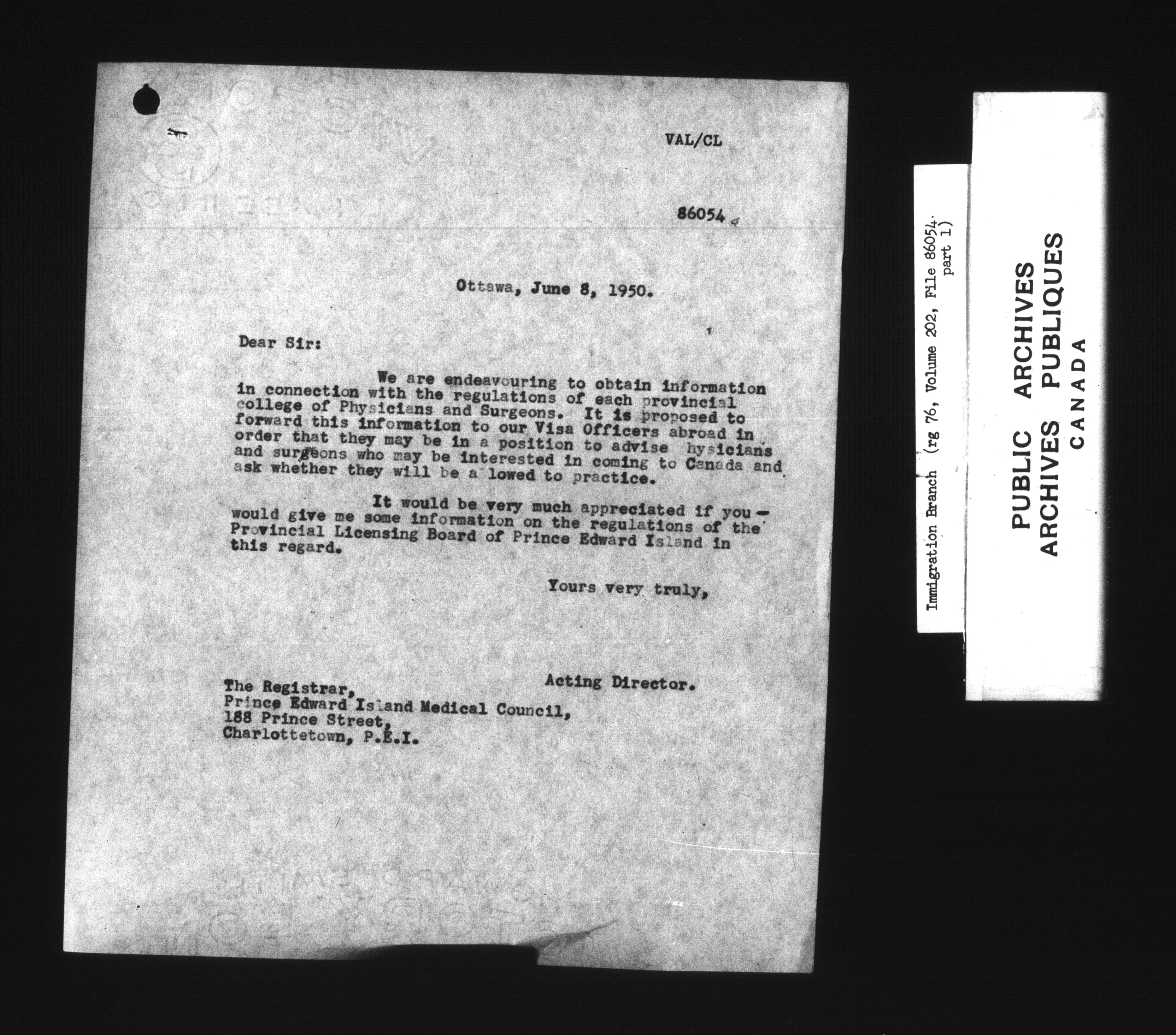 Subject, policy and case files in the First Central Registry series of the Immigration Program, 1892-1950 - 7356