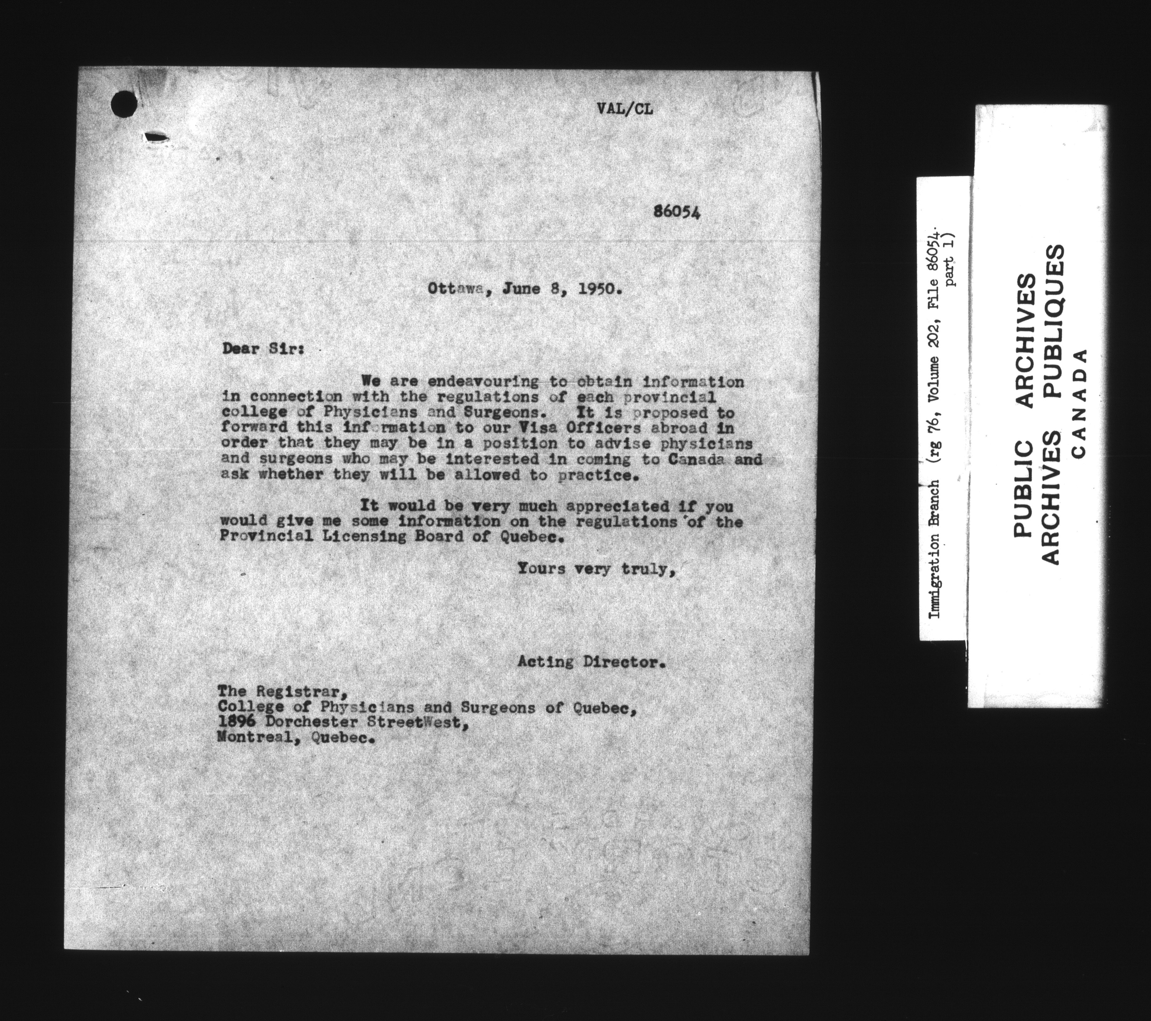 Subject, policy and case files in the First Central Registry series of the Immigration Program, 1892-1950 - 7356
