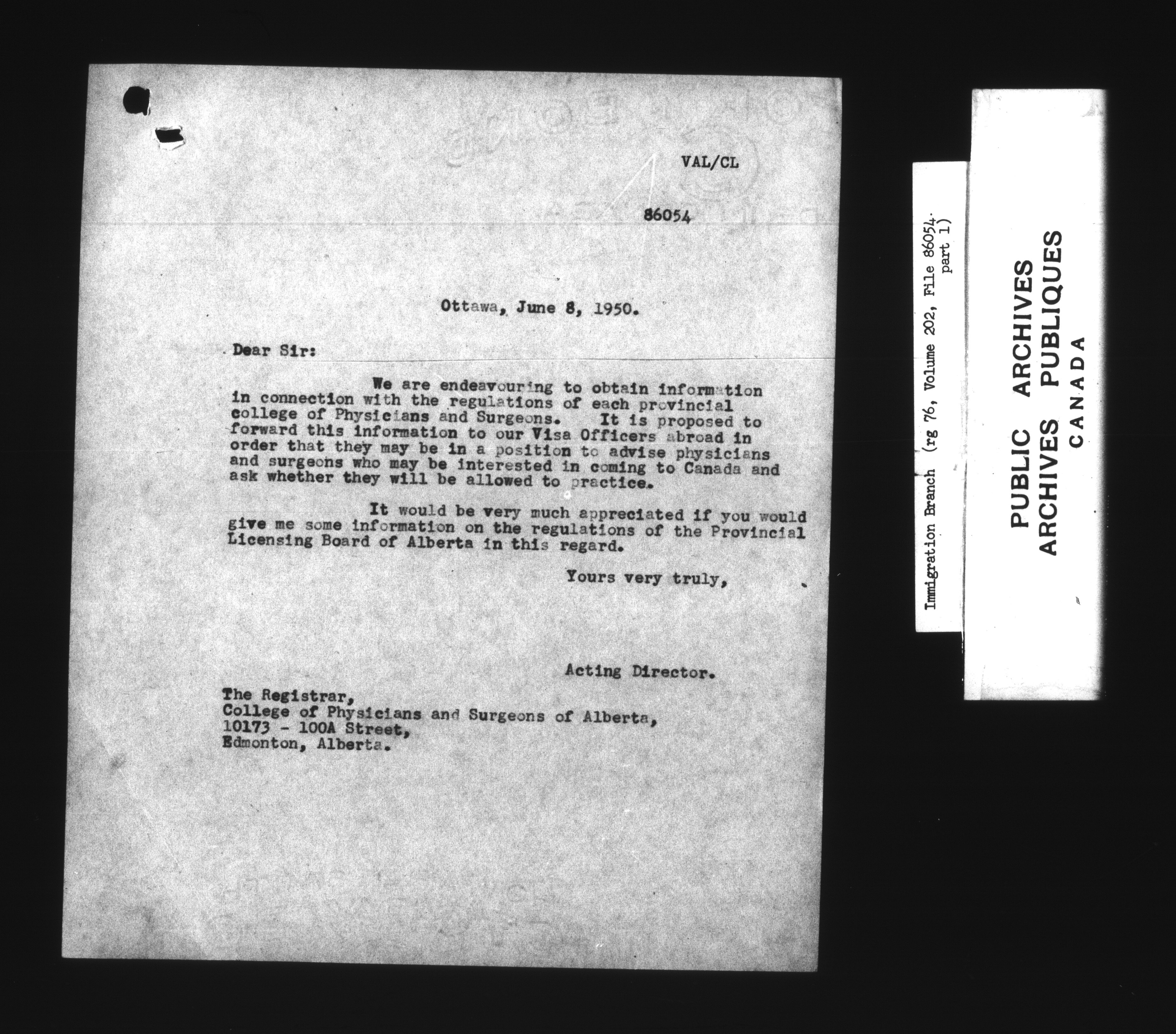 Subject, policy and case files in the First Central Registry series of the Immigration Program, 1892-1950 - 7356