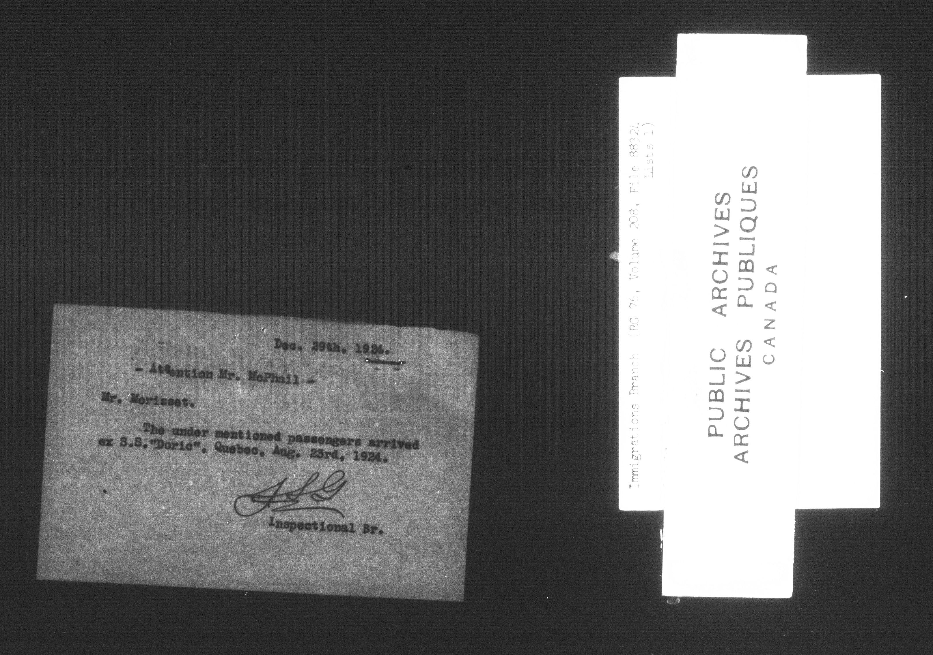 Subject, policy and case files in the First Central Registry series of the Immigration Program, 1892-1950 - 7361