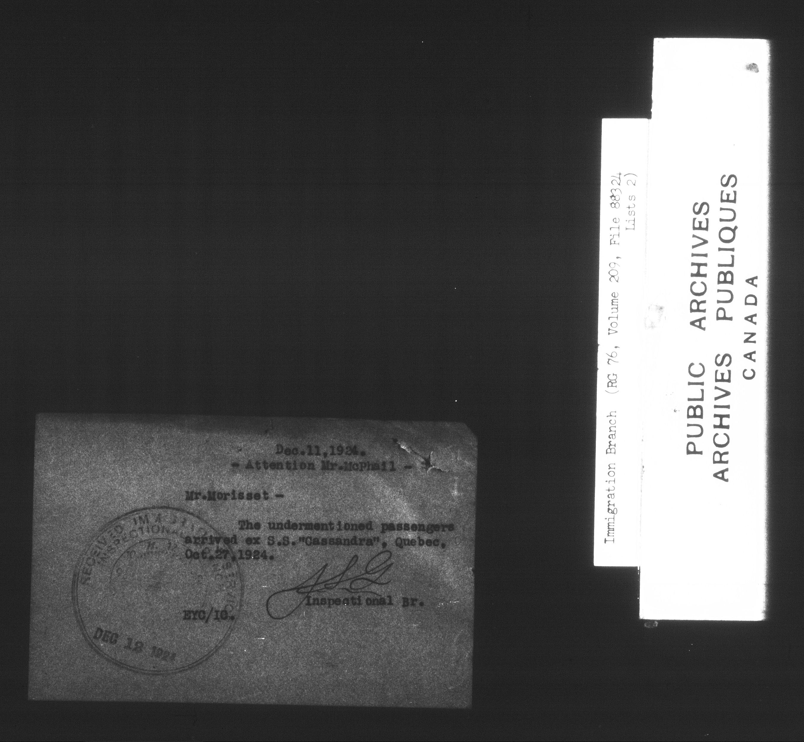 Subject, policy and case files in the First Central Registry series of the Immigration Program, 1892-1950 - 7361