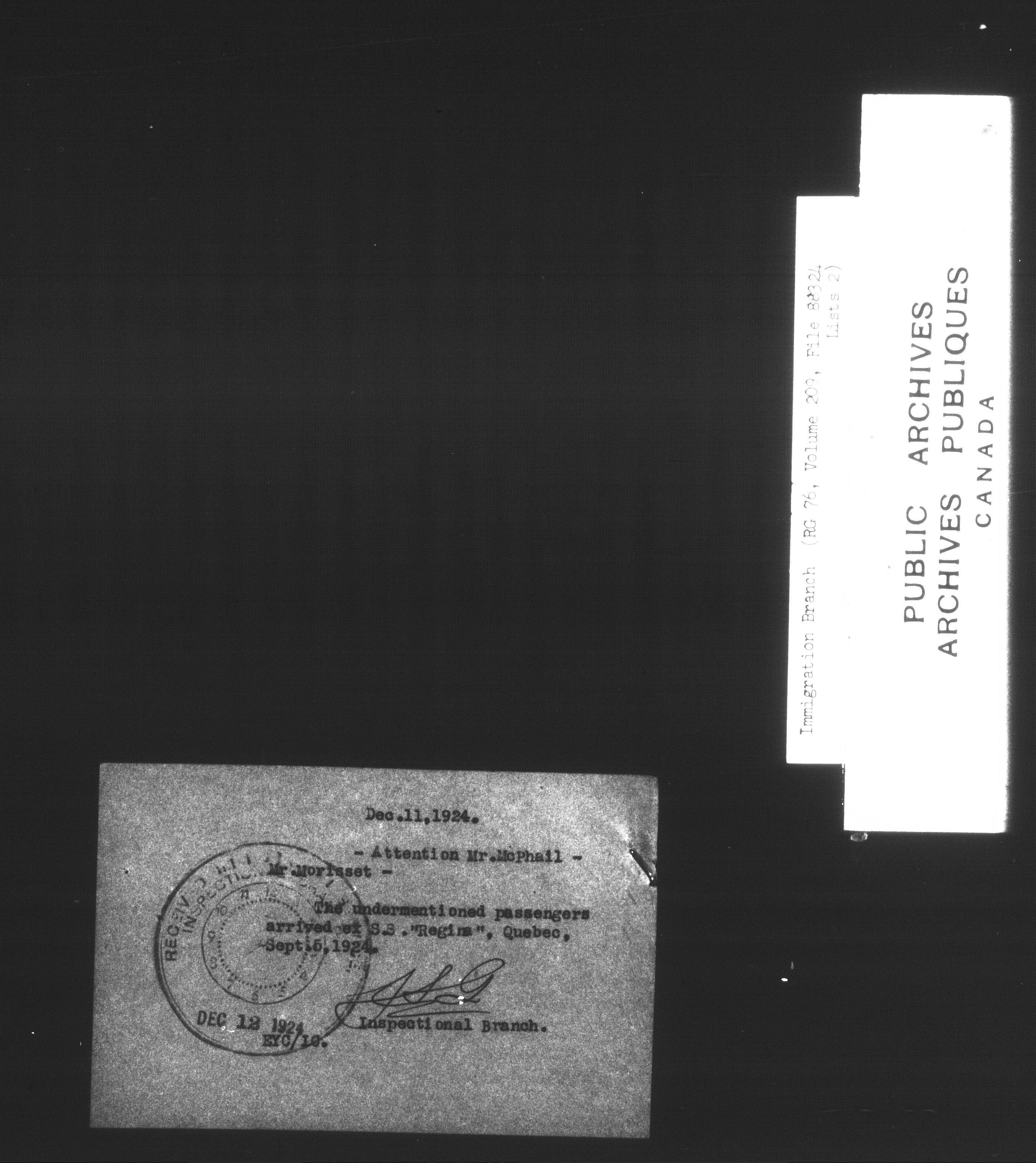 Subject, policy and case files in the First Central Registry series of the Immigration Program, 1892-1950 - 7361