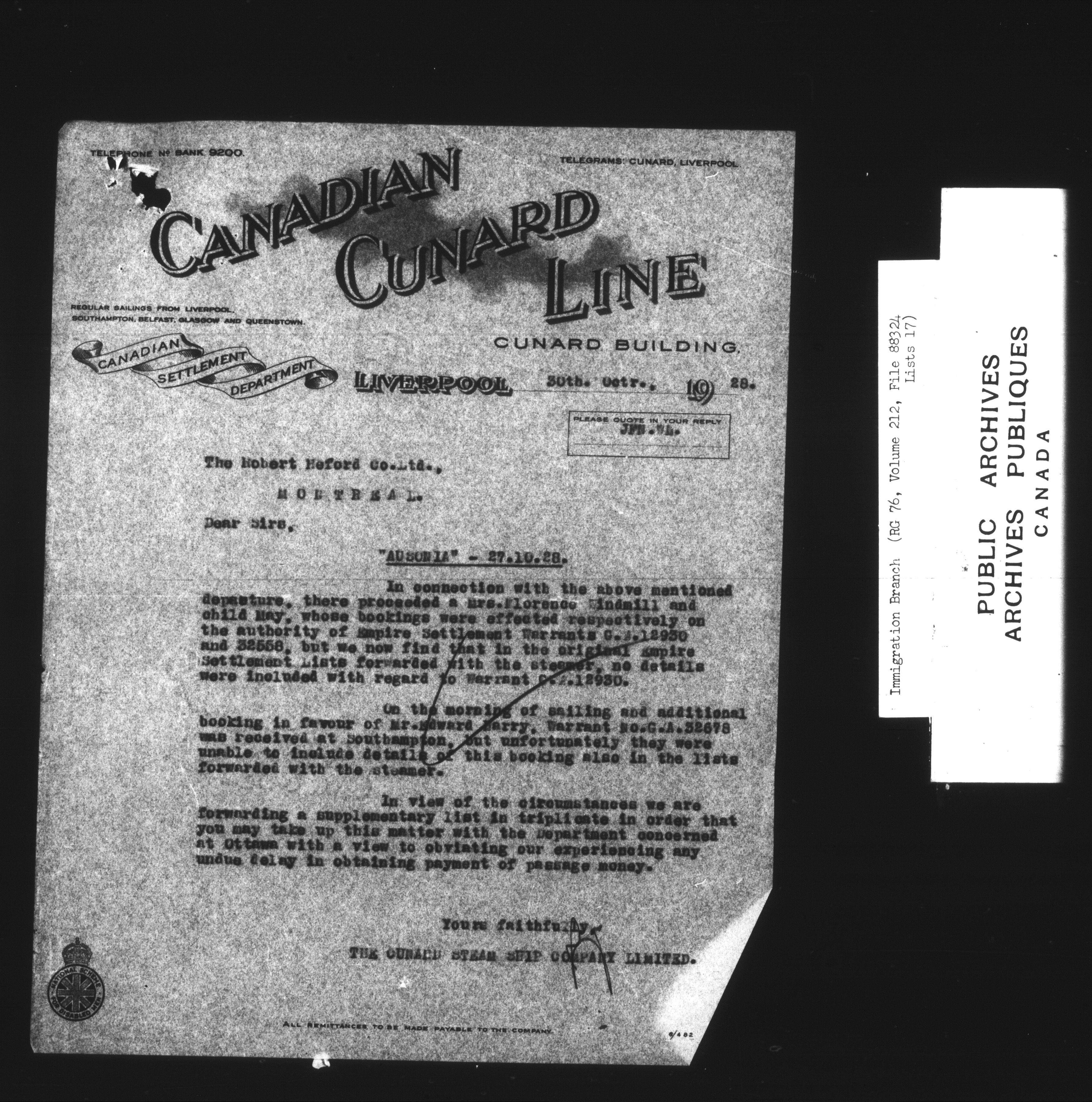 Subject, policy and case files in the First Central Registry series of the Immigration Program, 1892-1950 - 7363