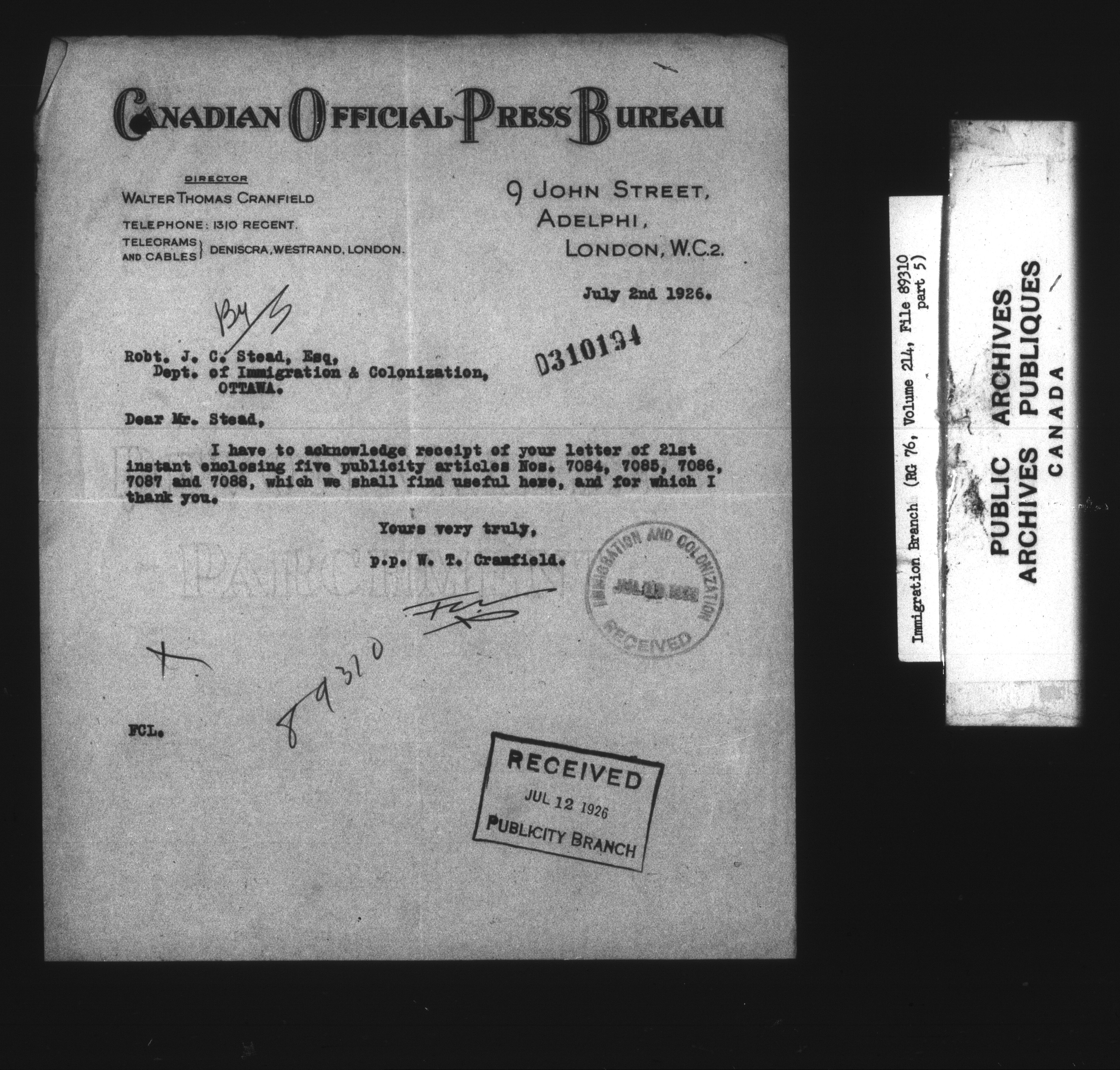 Subject, policy and case files in the First Central Registry series of the Immigration Program, 1892-1950 - 7366