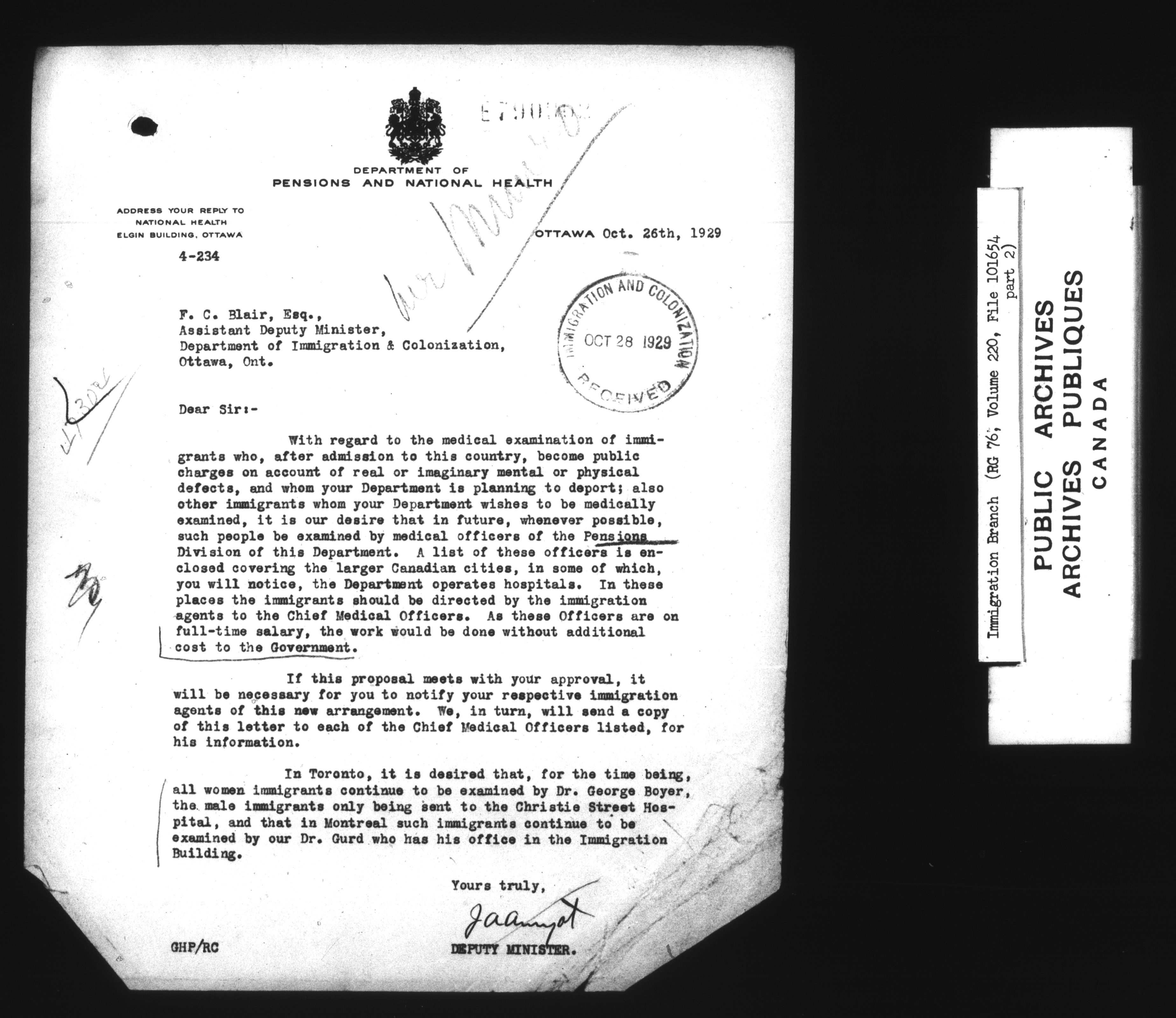 Subject, policy and case files in the First Central Registry series of the Immigration Program, 1892-1950 - 7370