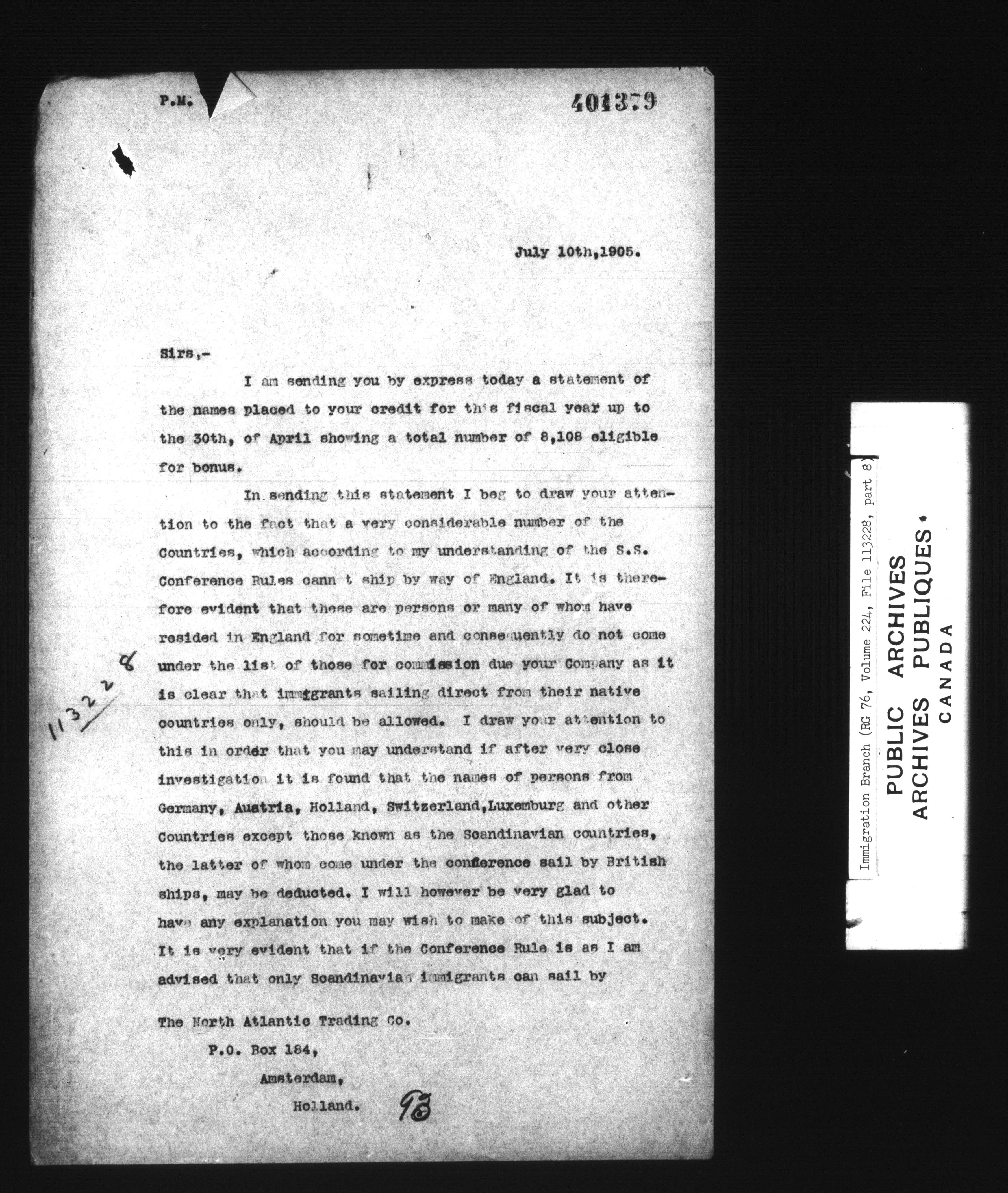 Subject, policy and case files in the First Central Registry series of the Immigration Program, 1892-1950 - 7373