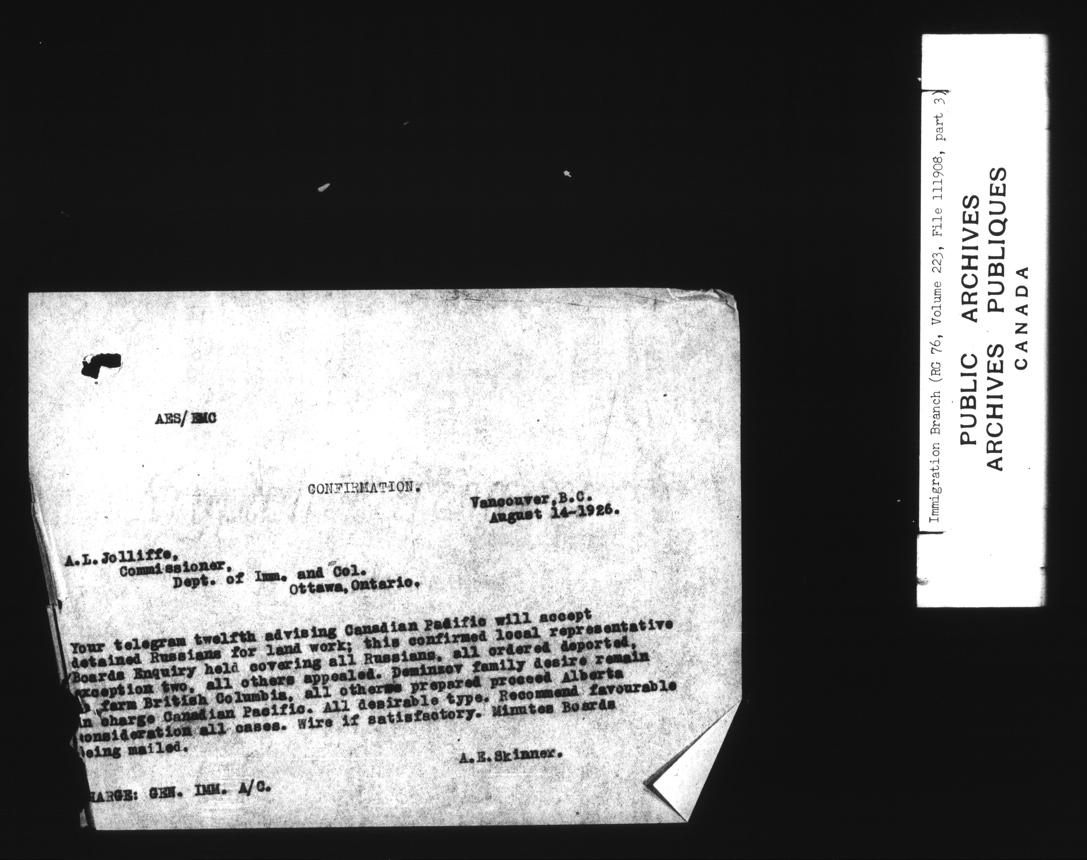 Subject, policy and case files in the First Central Registry series of the Immigration Program, 1892-1950 - 7373