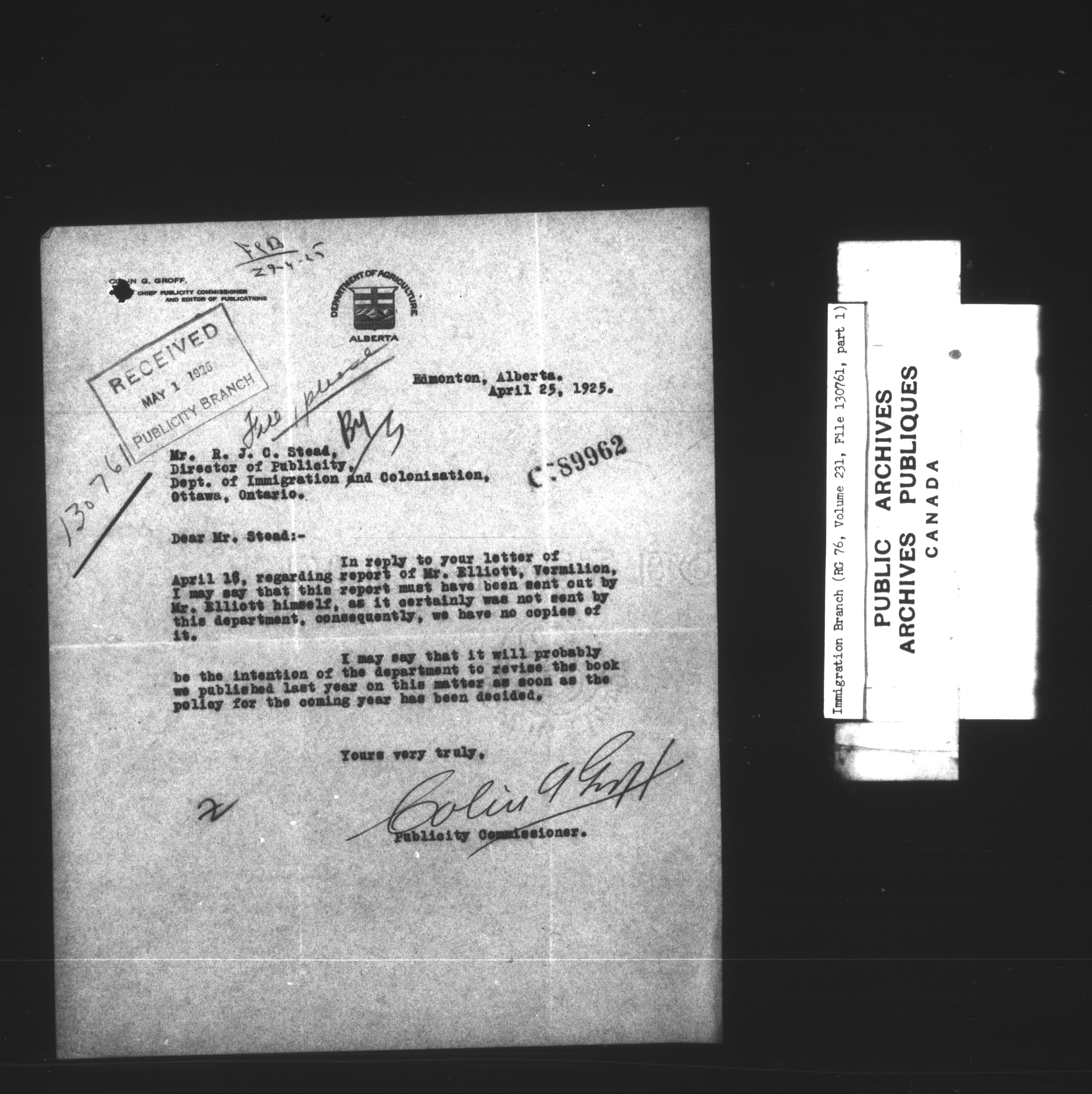 Subject, policy and case files in the First Central Registry series of the Immigration Program, 1892-1950 - 7380