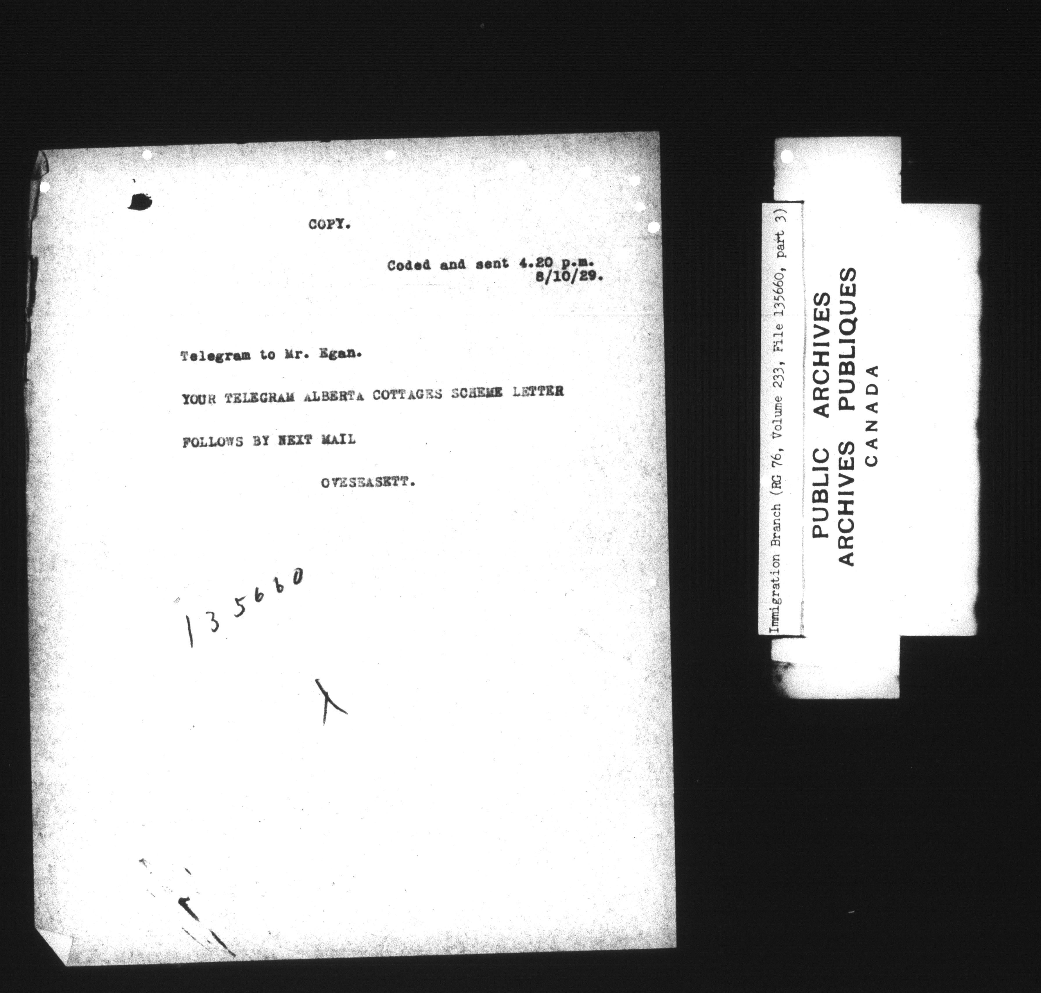 Subject, policy and case files in the First Central Registry series of the Immigration Program, 1892-1950 - 7383