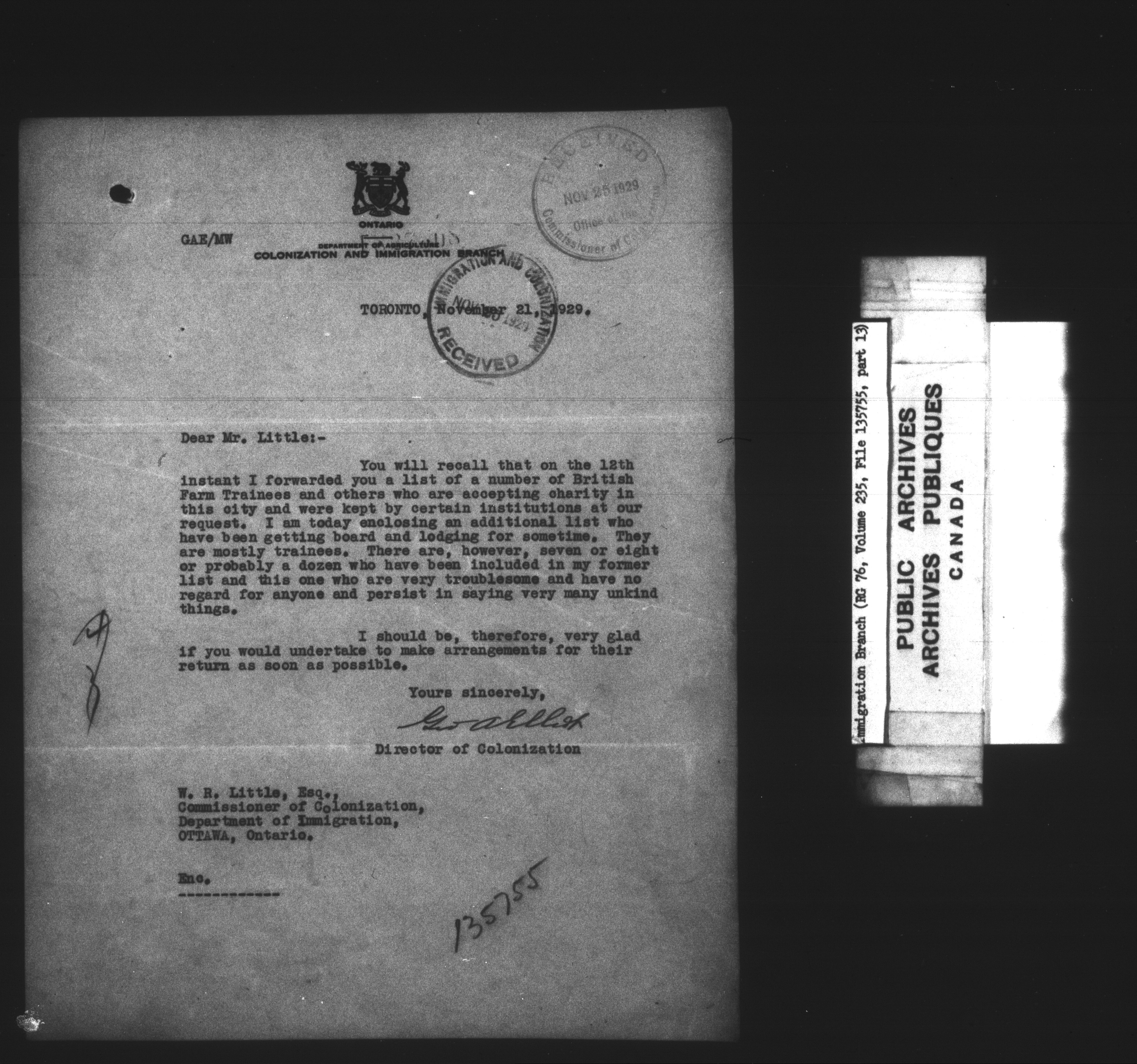 Subject, policy and case files in the First Central Registry series of the Immigration Program, 1892-1950 - 7385