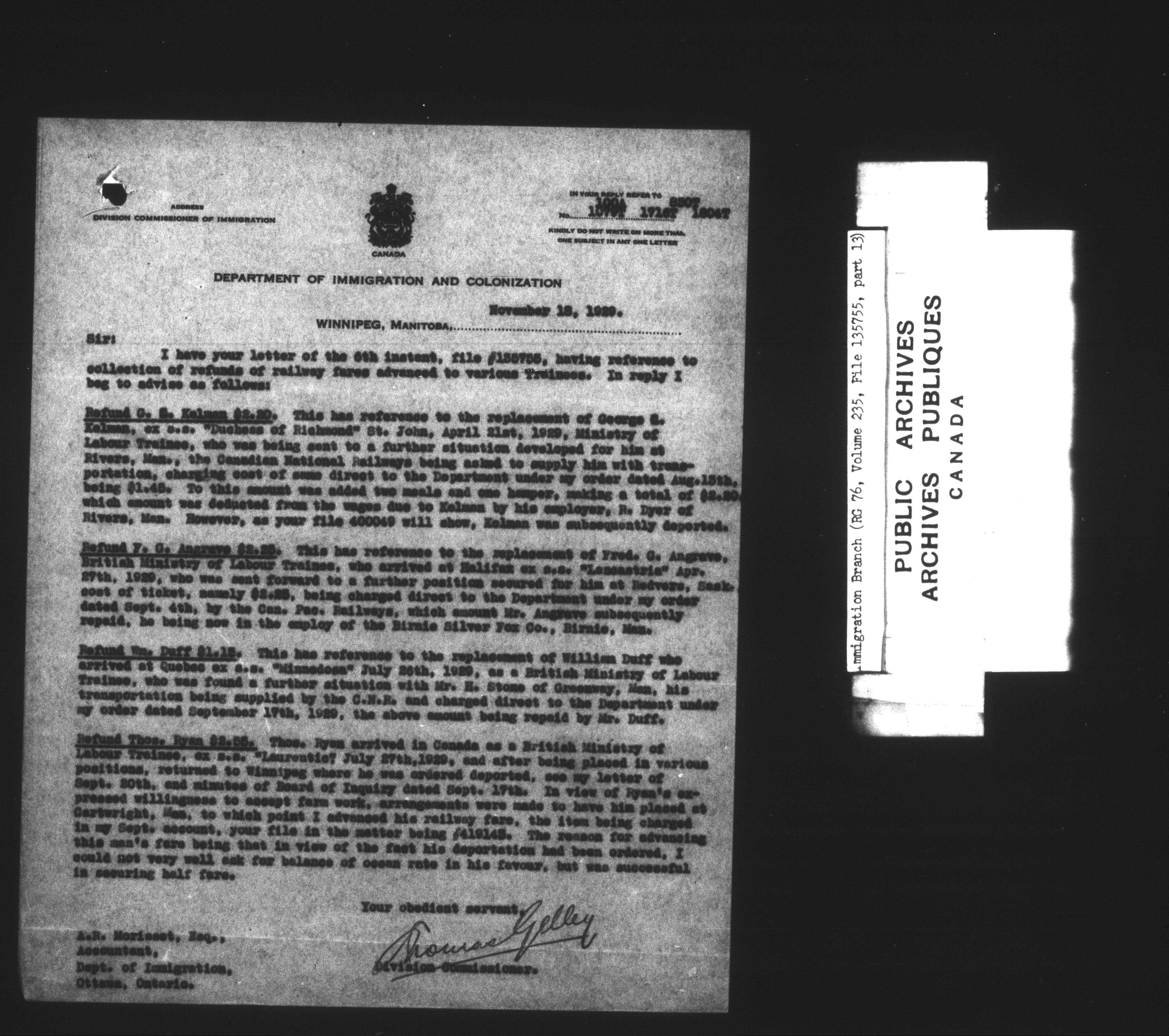 Subject, policy and case files in the First Central Registry series of the Immigration Program, 1892-1950 - 7385