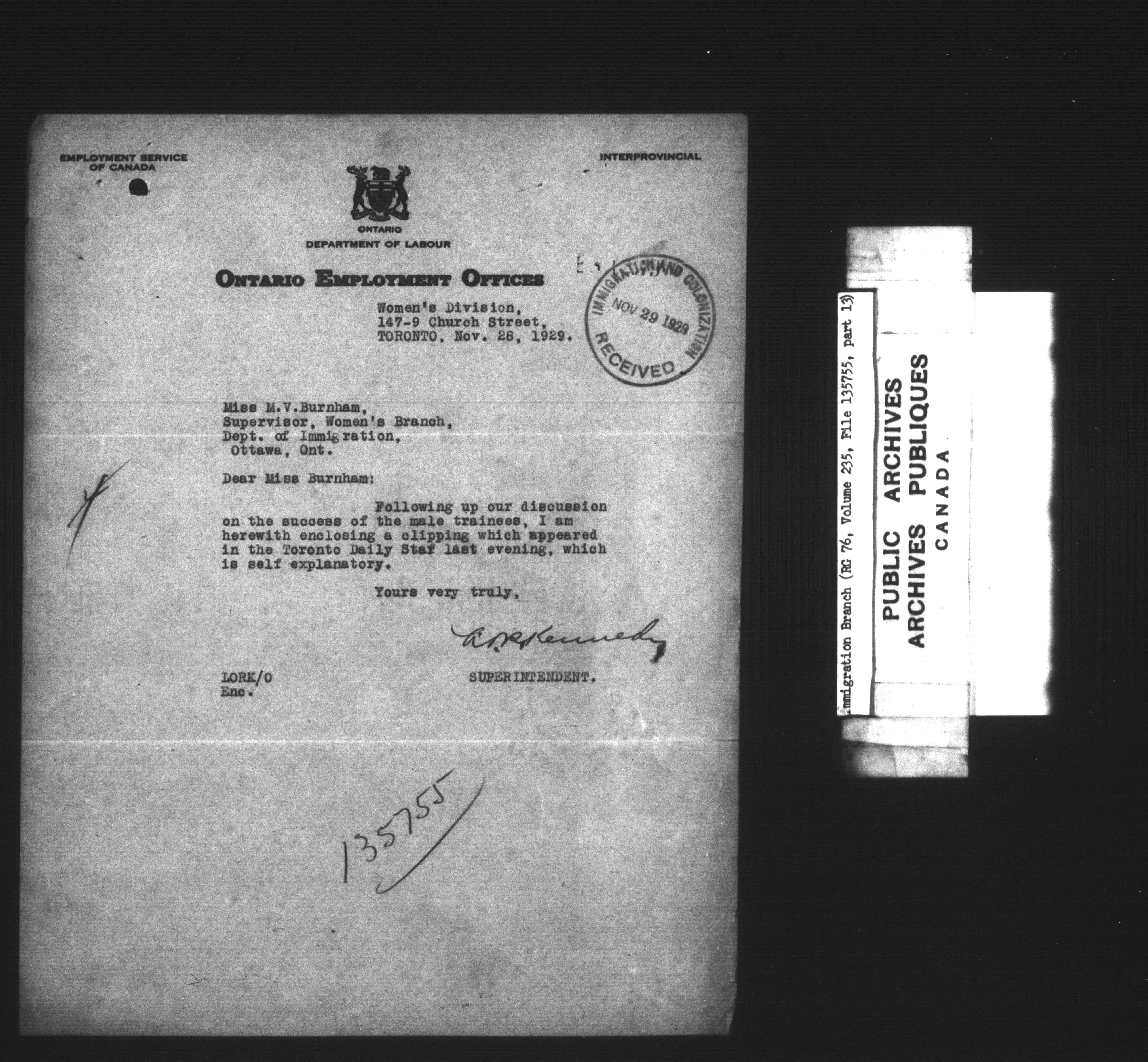 Subject, policy and case files in the First Central Registry series of the Immigration Program, 1892-1950 - 7385
