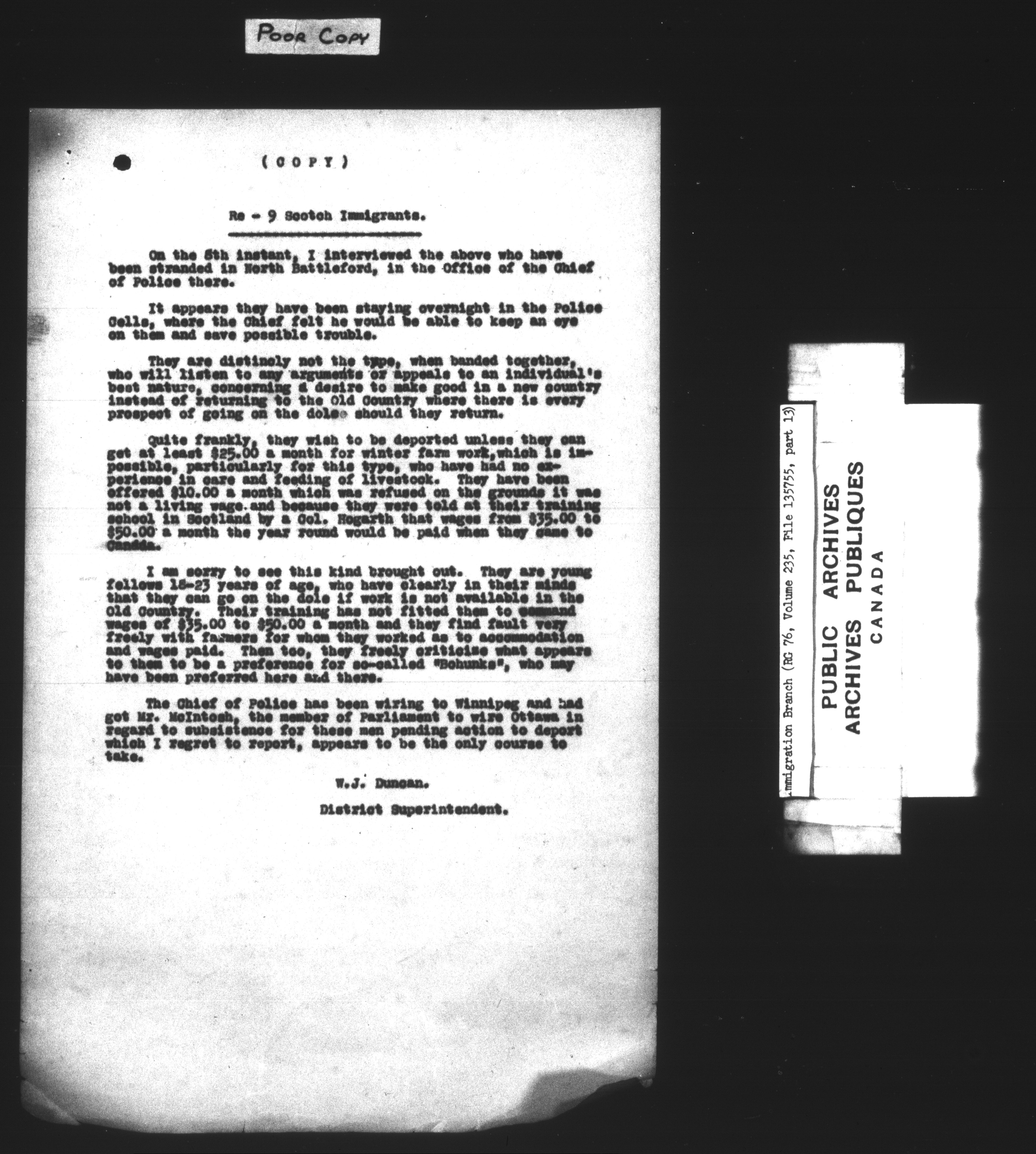 Subject, policy and case files in the First Central Registry series of the Immigration Program, 1892-1950 - 7385