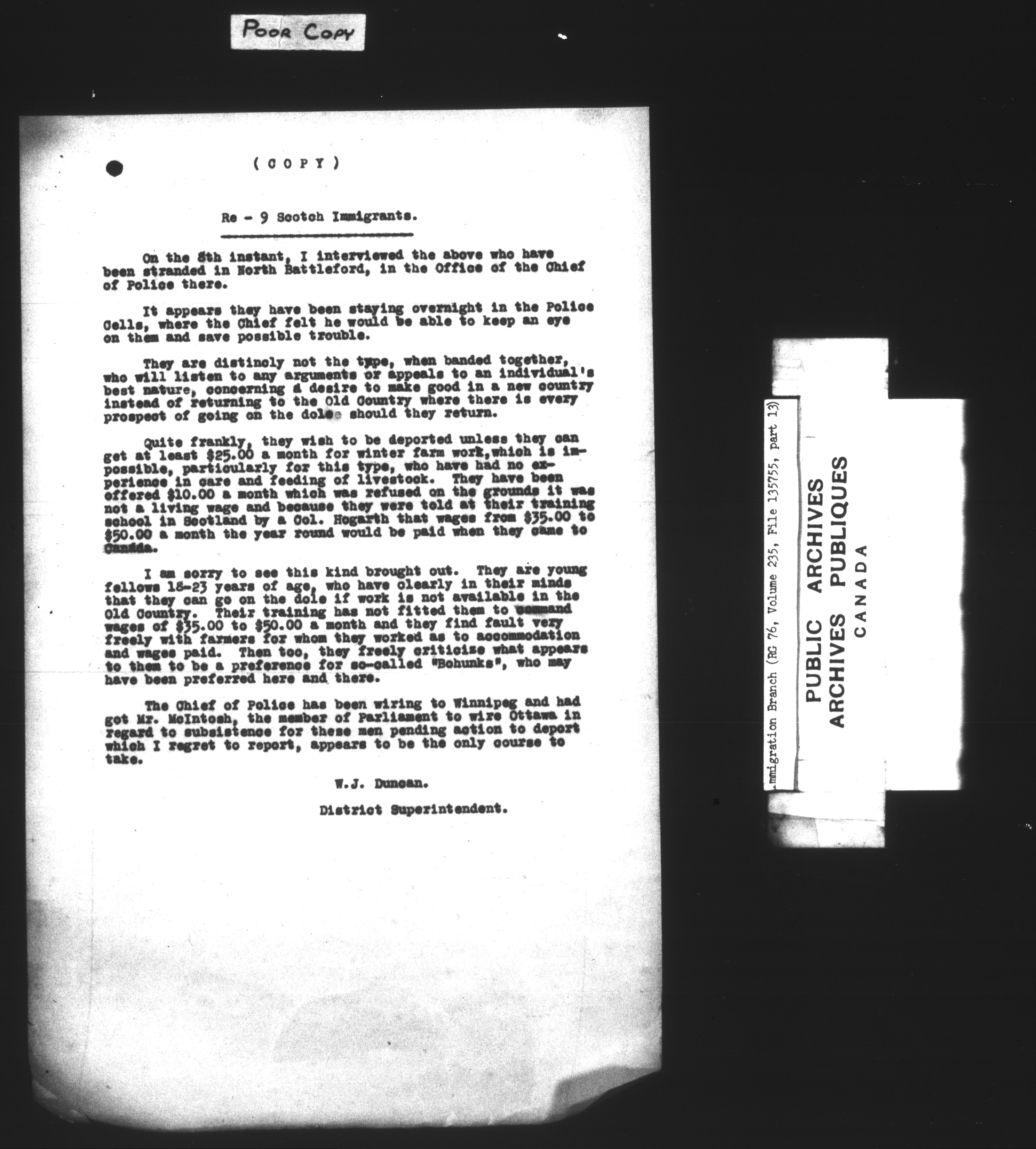 Subject, policy and case files in the First Central Registry series of the Immigration Program, 1892-1950 - 7385