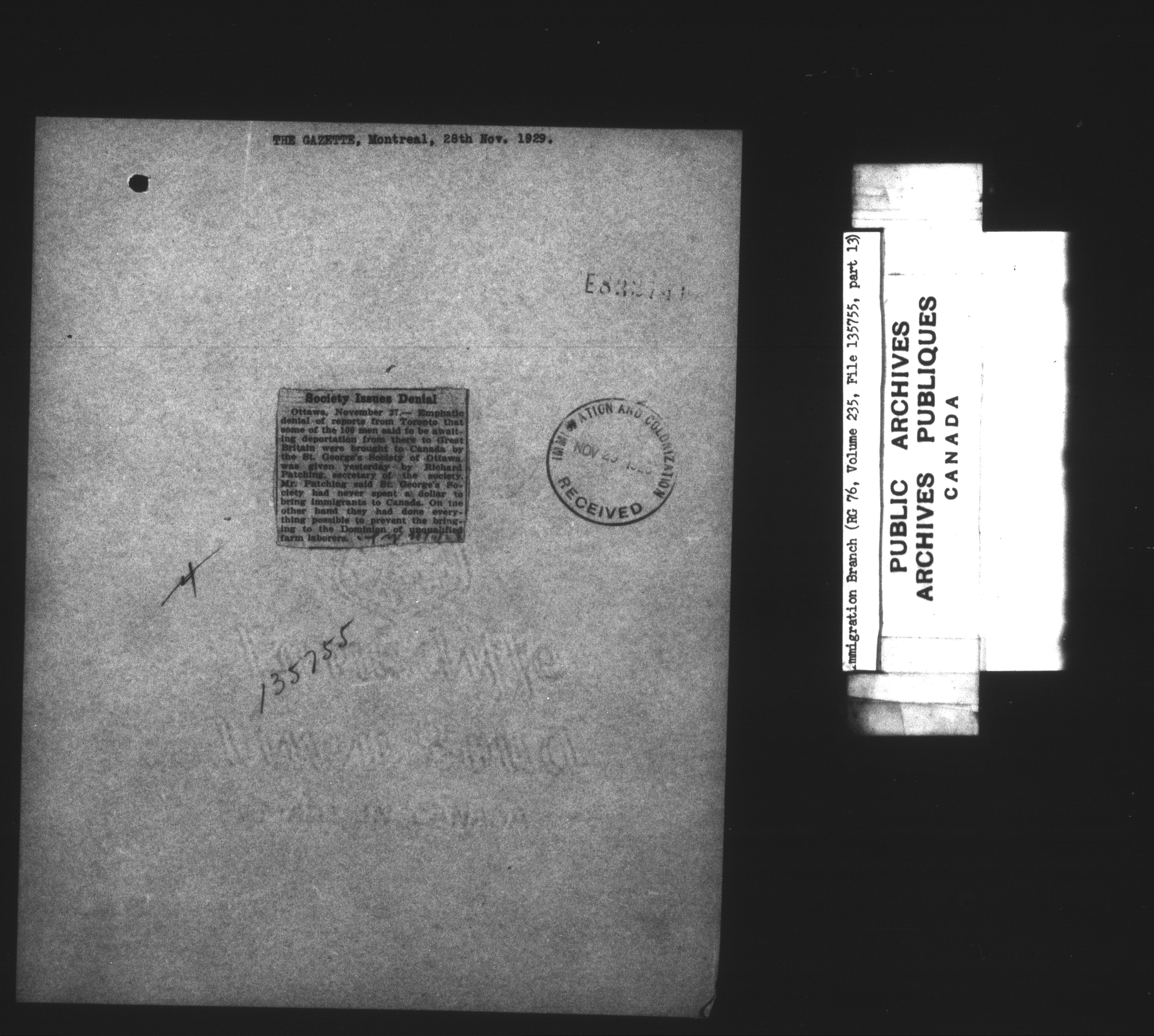 Subject, policy and case files in the First Central Registry series of the Immigration Program, 1892-1950 - 7385