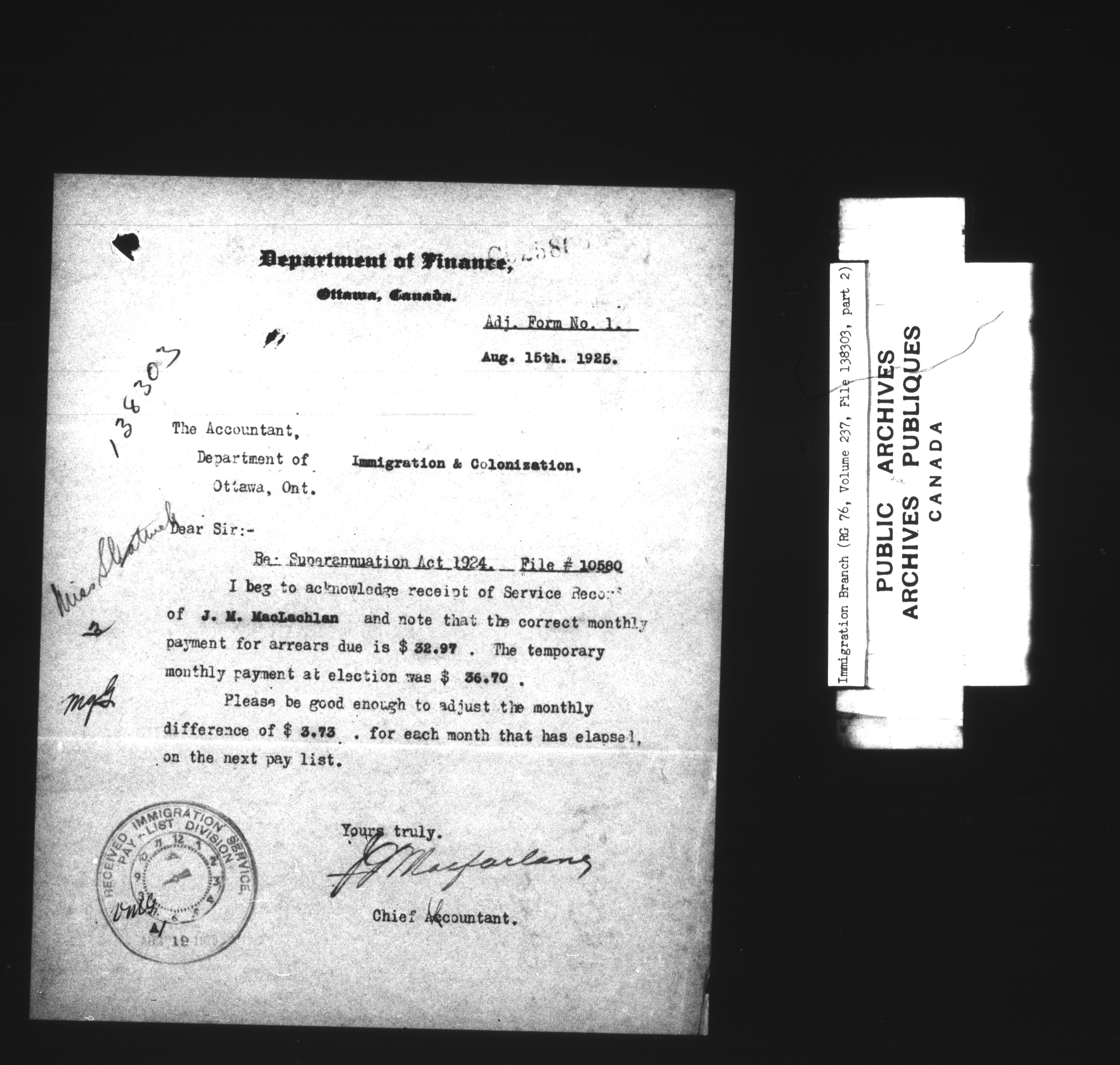 Subject, policy and case files in the First Central Registry series of the Immigration Program, 1892-1950 - 7386