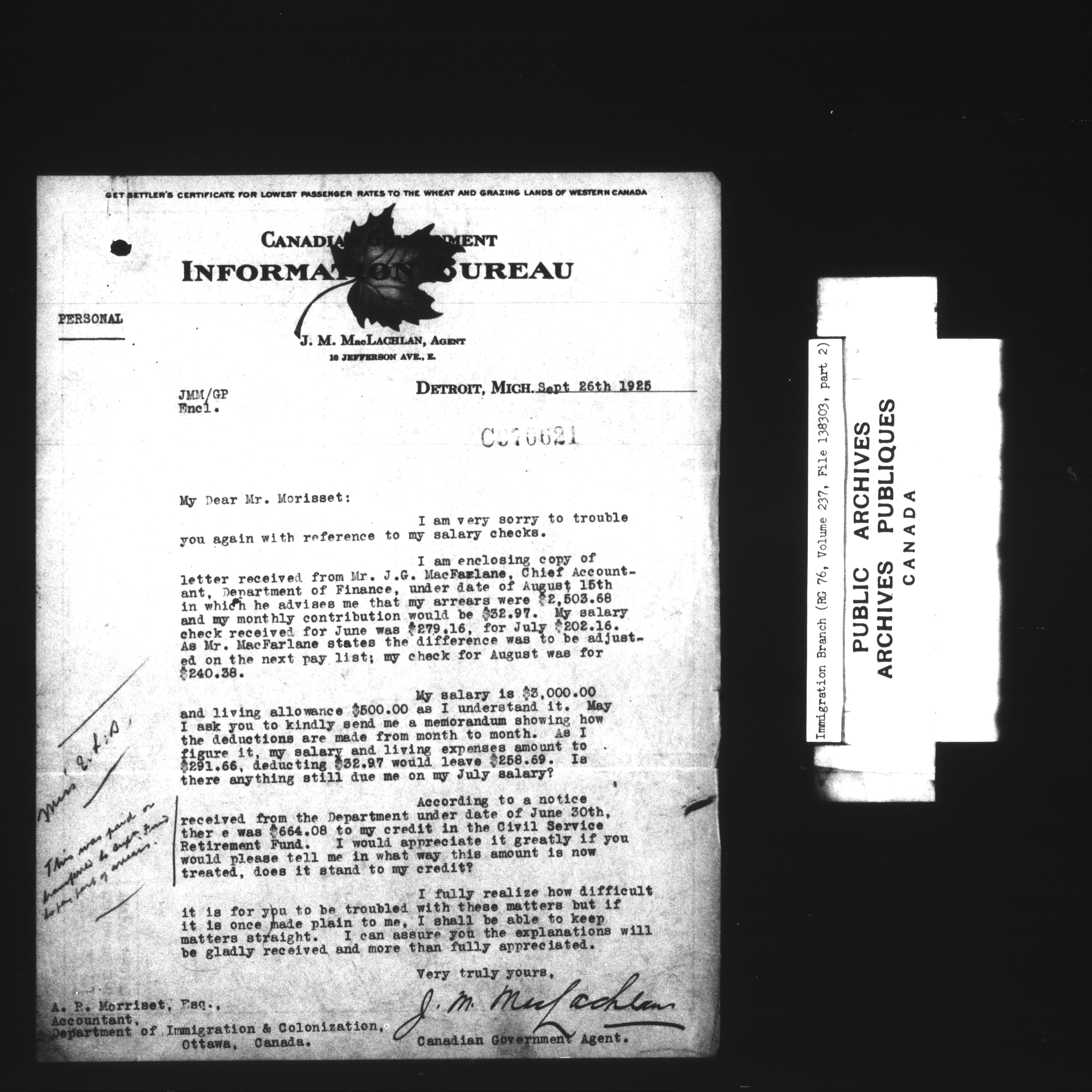 Subject, policy and case files in the First Central Registry series of the Immigration Program, 1892-1950 - 7386